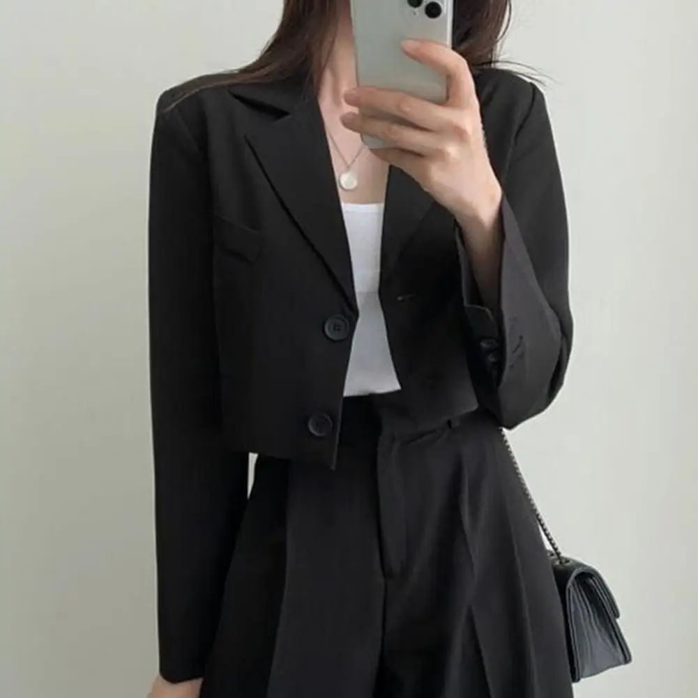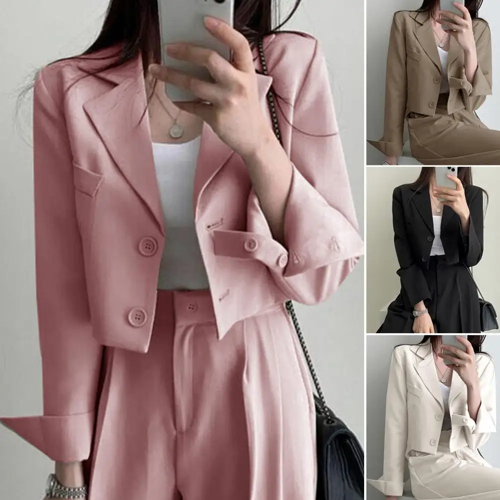 Lady Formal Coat Formal Business Style Women's Single-breasted Suit Coat Classic Lapel Long Sleeves Solid Color for Fall Spring
