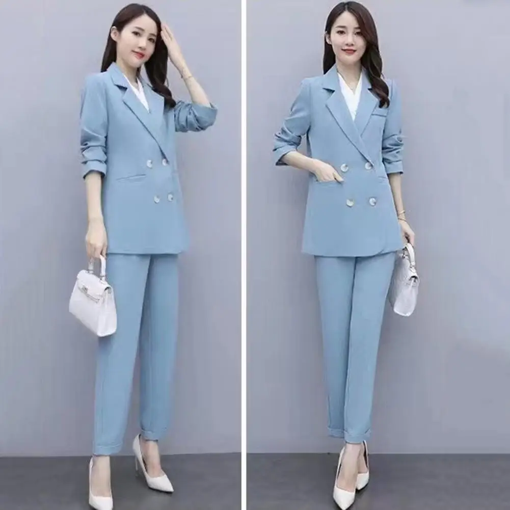 Name | Formal Business Suit Elegant Women's Business Suit Set with Double-breasted Coat High Waist Pants for Formal Office Wear Commute |