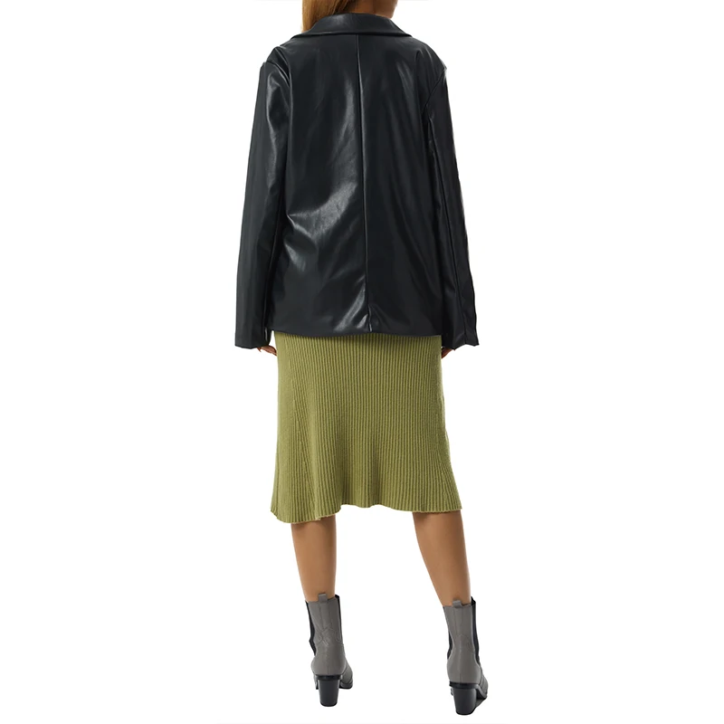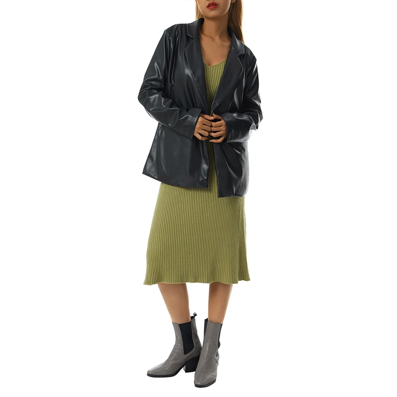 Women Leather Coat Long Sleeve Lapel Solid Color Casual Party Club Street Office Formal Cardigan