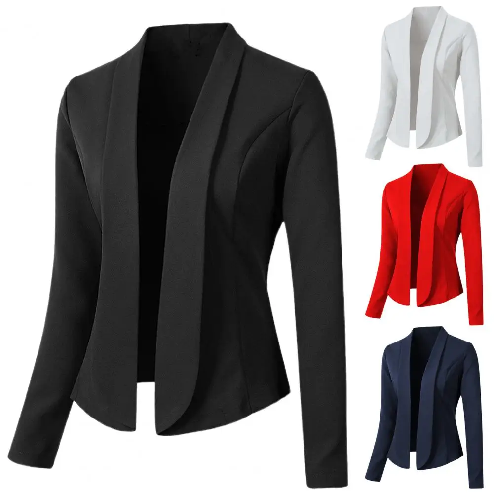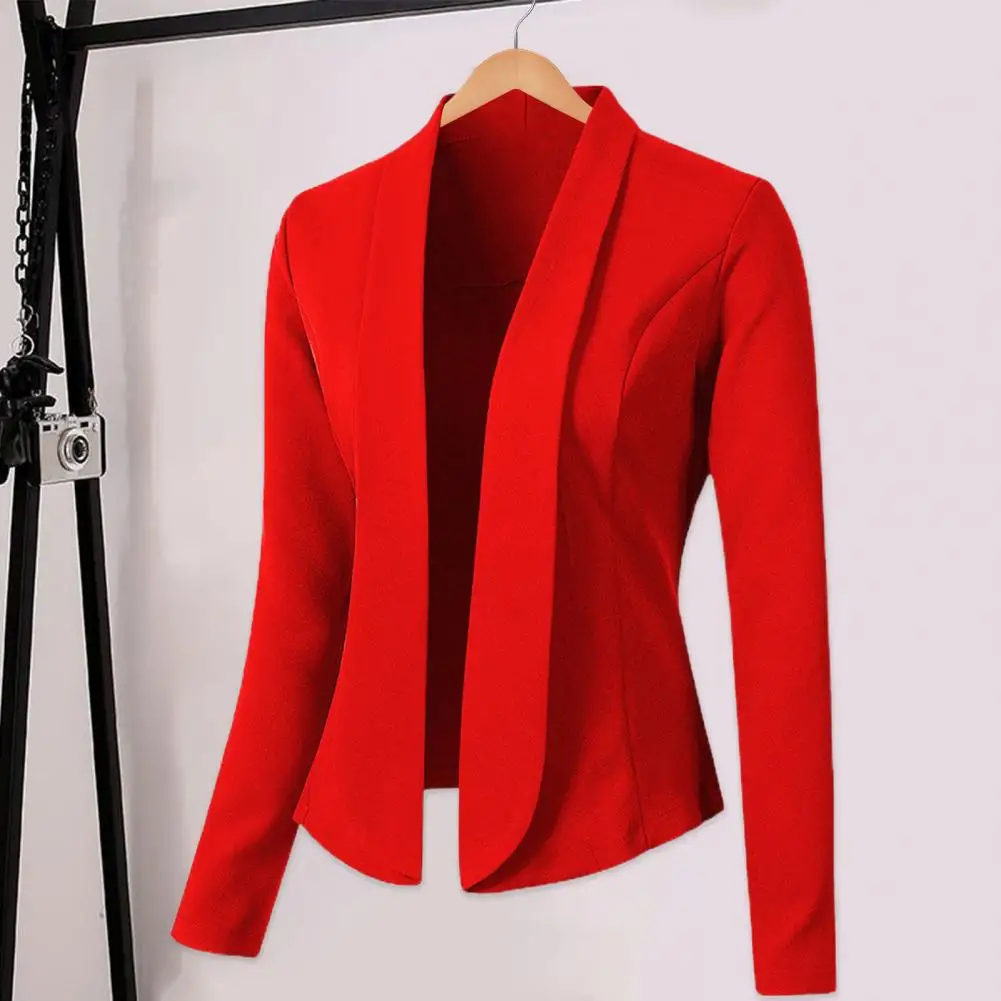 Jacket Stylish Women's Slim Fit Suit Coat for Business Office Lapel Cardigan Long Sleeve Solid Color for Spring Autumn Solid