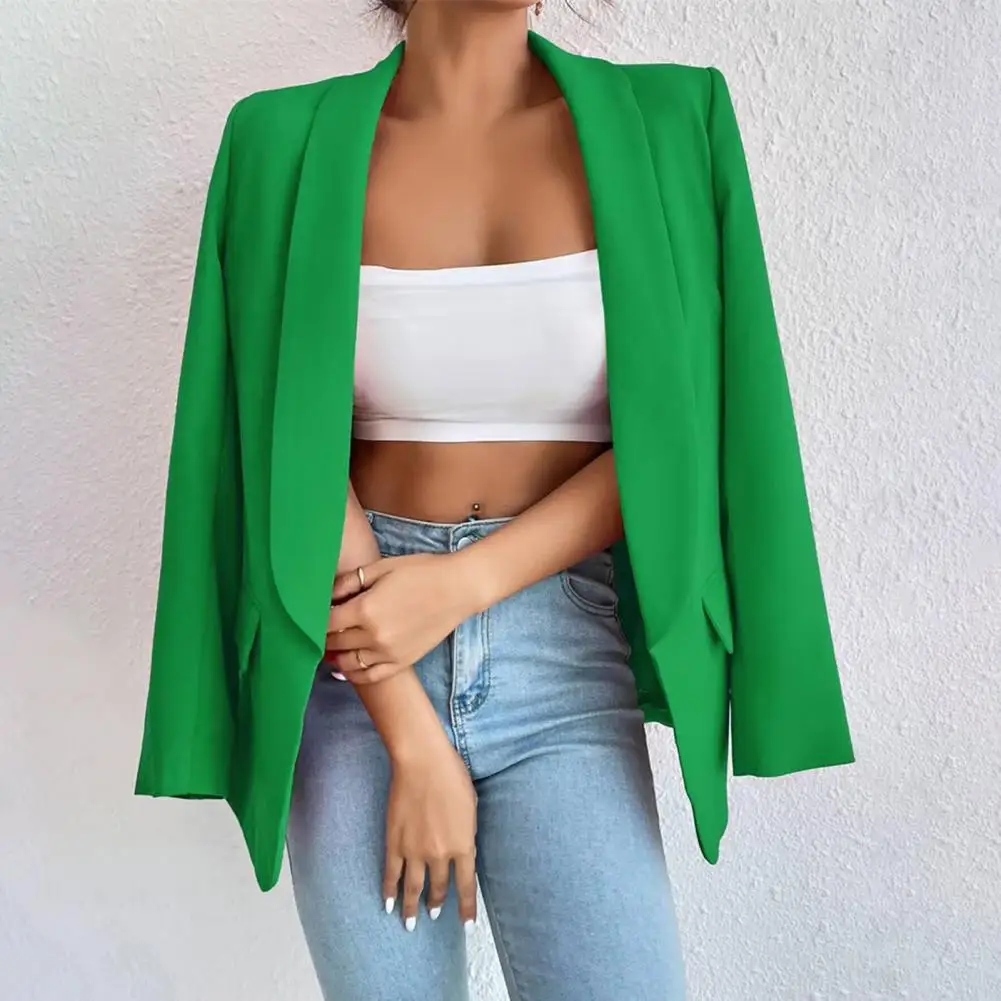 Versatile Women Suit Jacket Elegant Lapel Suit Coat for Women Stylish Open Front Business Outwear Solid Color Loose Fit for Work
