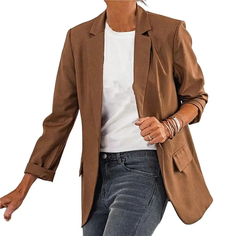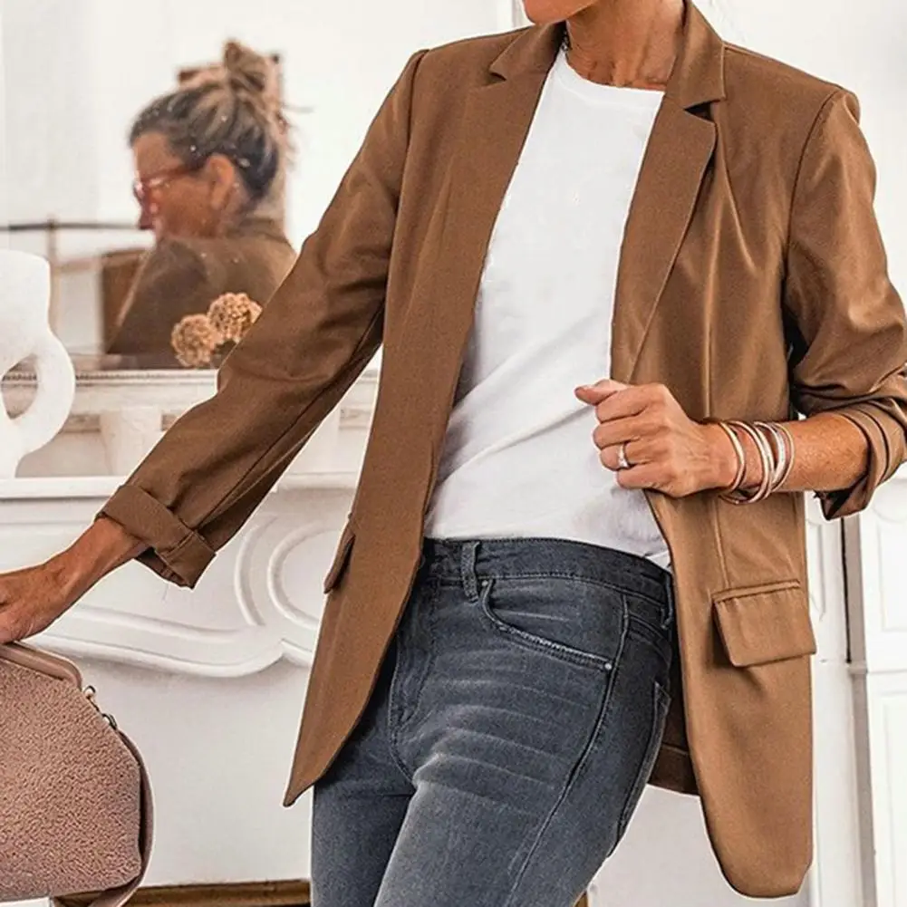 Windproof Modern Lady Lapel Business Blazer Suit Coat Skin-touch Suit Jacket Basic Style Outerwear
