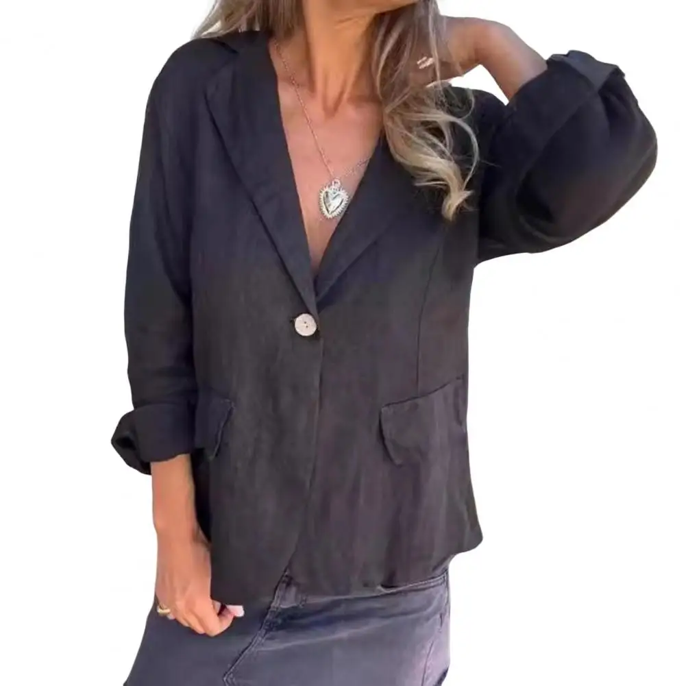 Button Suit Coat Elegant Lapel V-neck Women's Suit Coat with Flap Pockets for Business Outwear in Spring Autumn Everyday