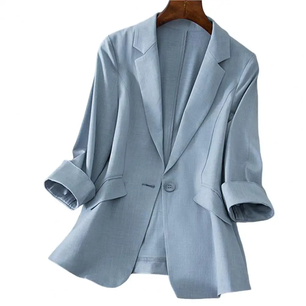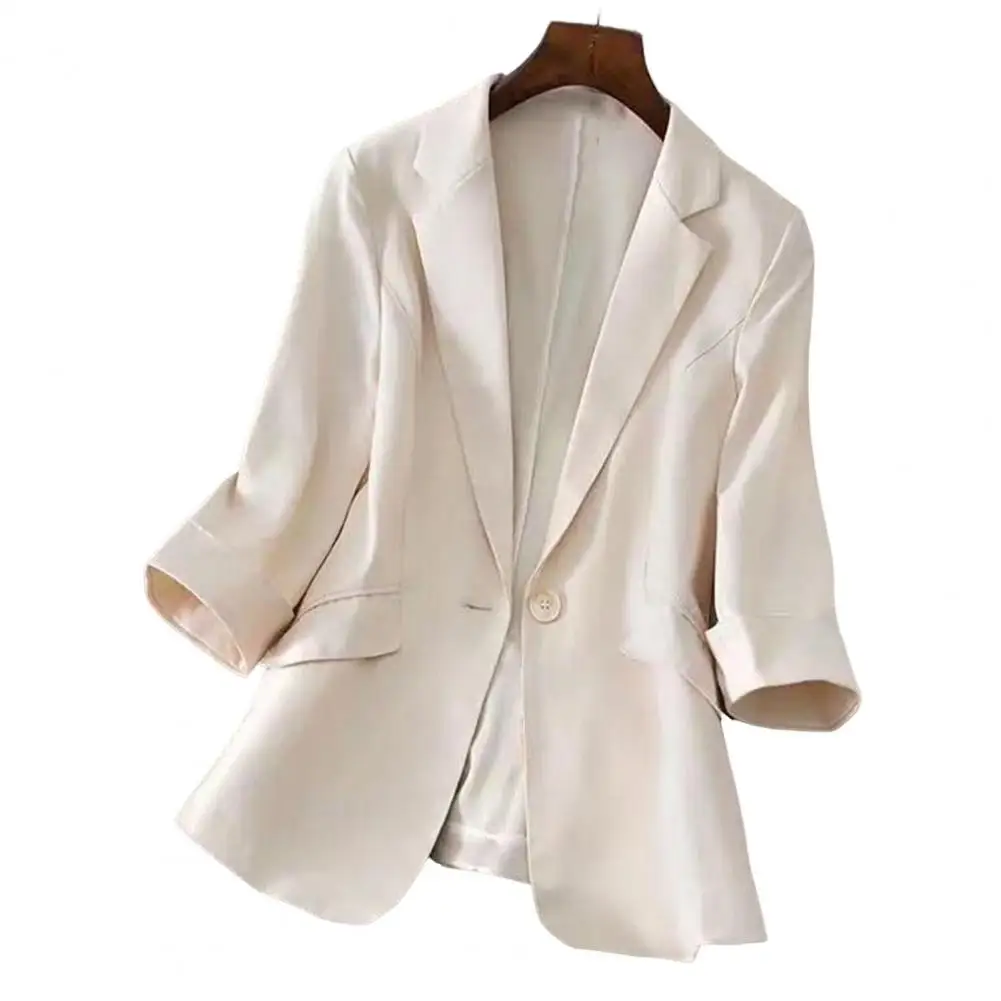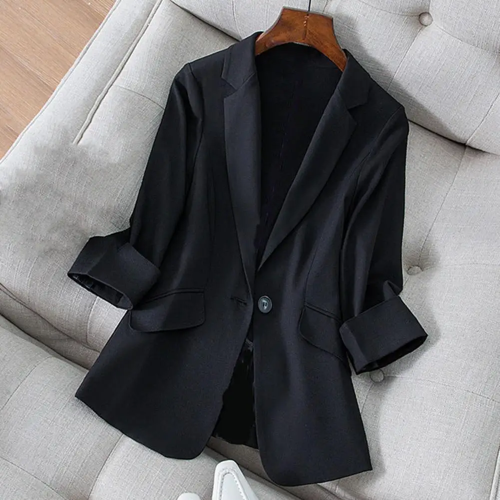Office Lapel Lady Blazer Three Quarter Sleeve Temperament Single Button Design Suit Coat Korean Casual Jackets Coat for Business