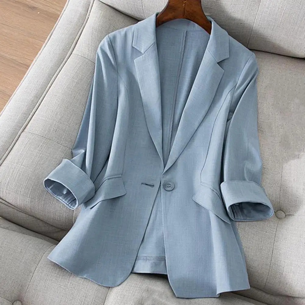 Hot!Lapel Fashion 2022 Blazer Woman Jacket Three Quarter Sleeve Slim Temperament Single Button Design Suit Coat for Business