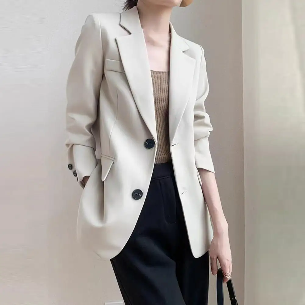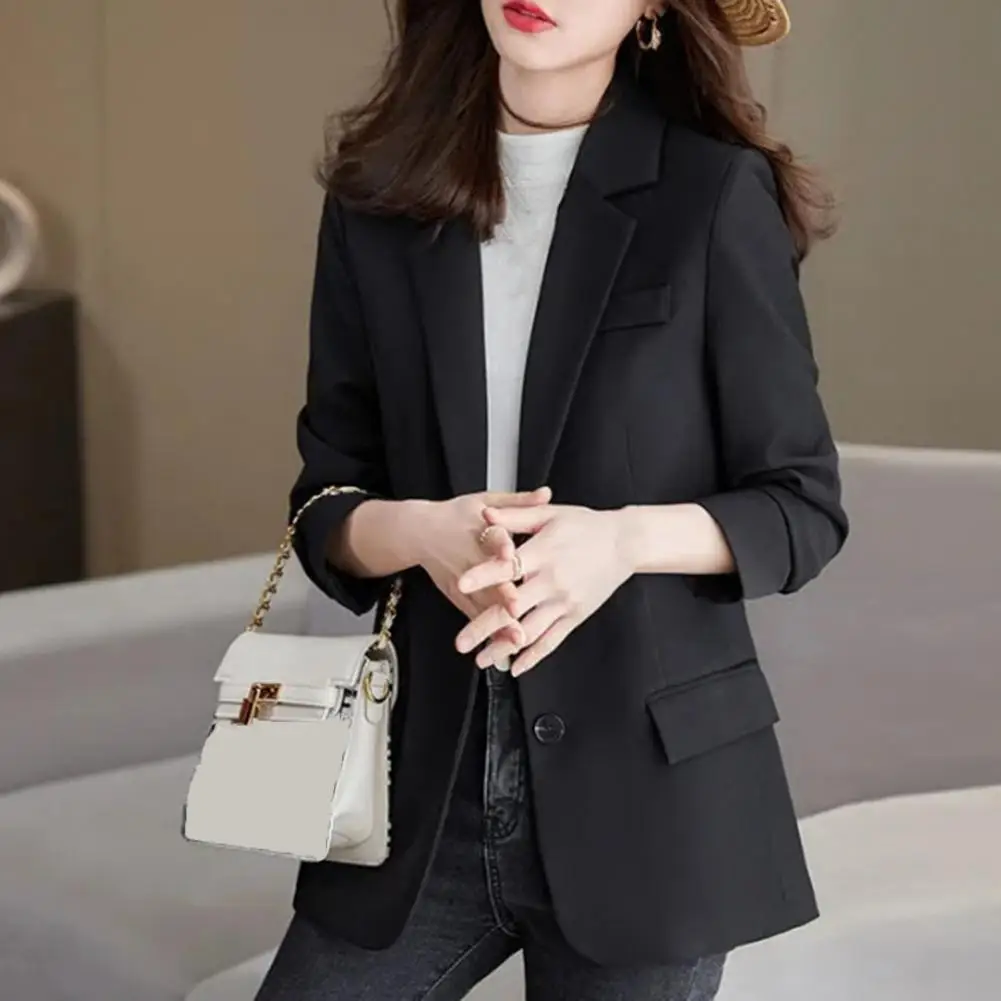 Breathable Suit Jacket Stylish Women's Business Suit Coat Solid Color Turn-down Collar Single-breasted Button Decor for Office