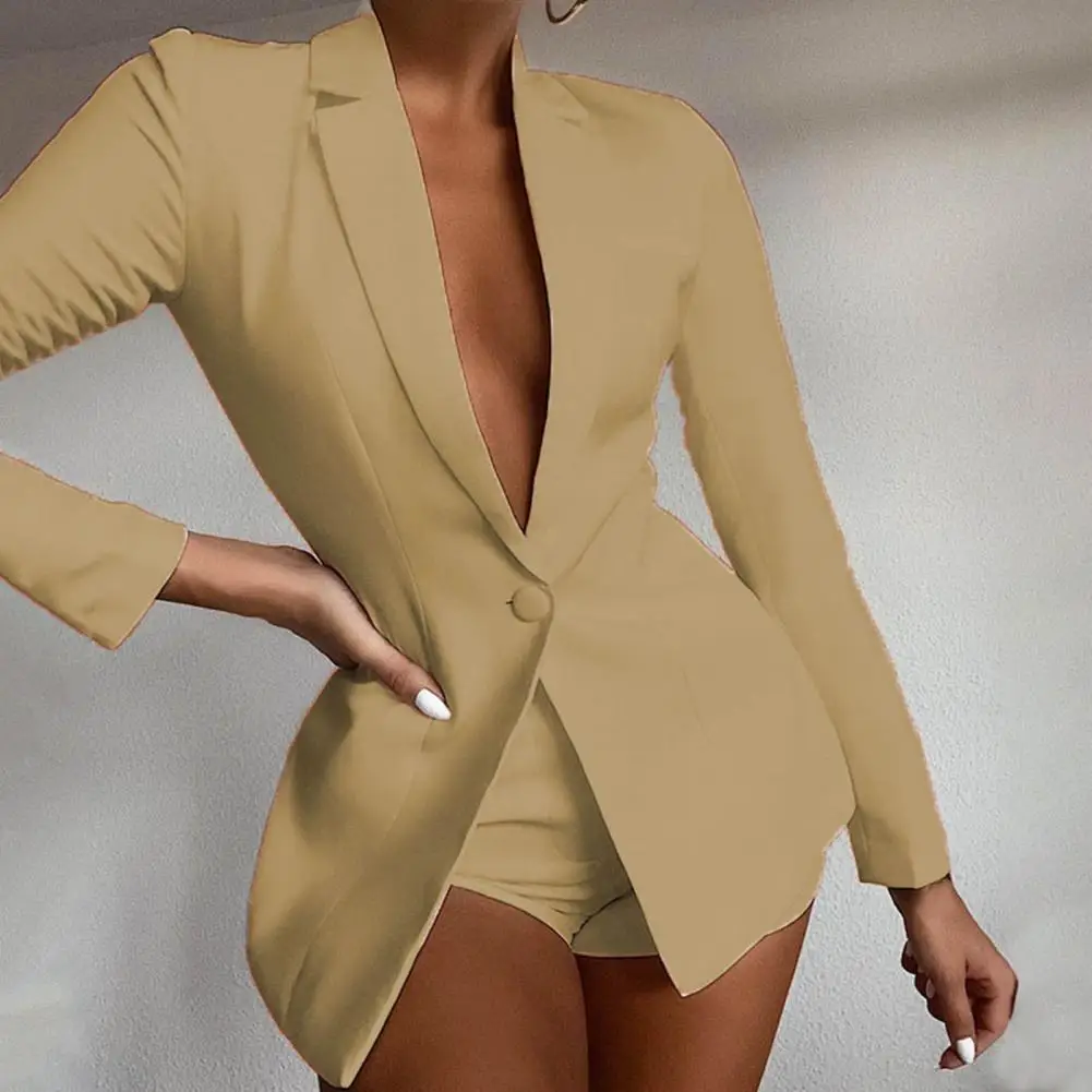 2023 Suit Coat Autumn Spring Single Button Basic Blazer WomanLapel Deep V Neck Long Sleeve Fashion Solid Slim Jacket Blazers