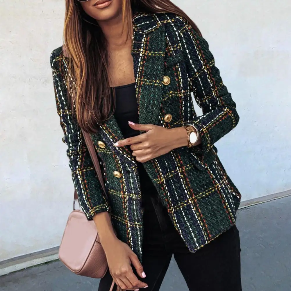 Winter Coat Close-fitting Women Coat Slim Fit Thermal Stylish Buttons Formal Lady Blazer