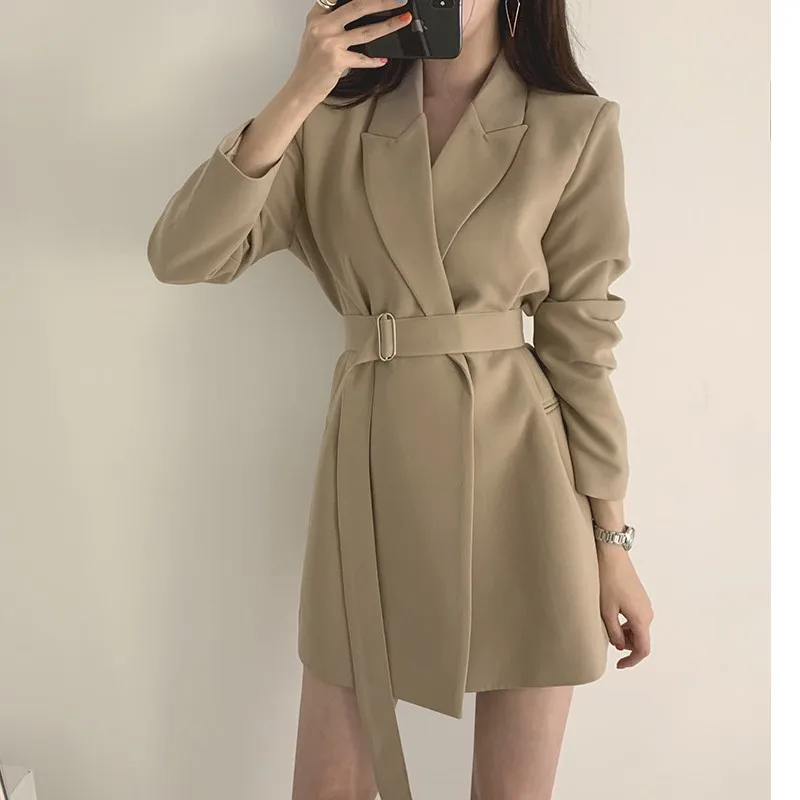 New In Spring Autumn Blazer For Women 2024 Outerwears Office Lady Coats Lace-up Slim Retro Women Clothing Office Elegant Jacket