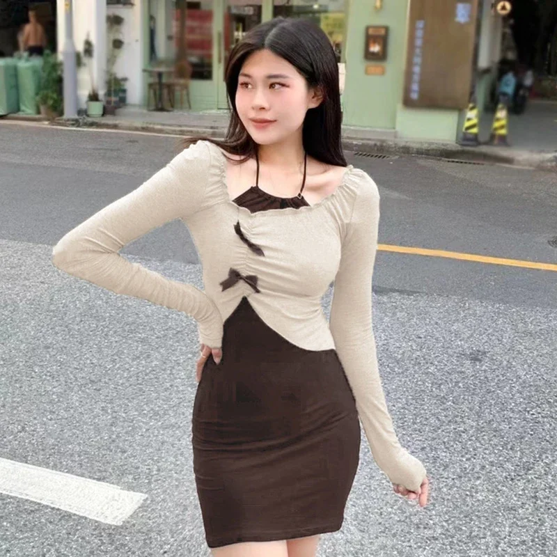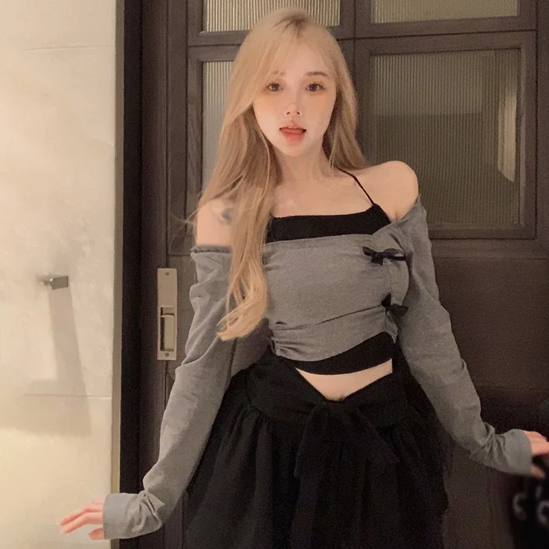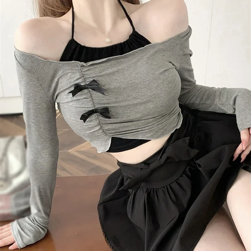 Name | Solid color Sweet One shoulder Ladies two-piece set Irregular Ladies' top Bow |