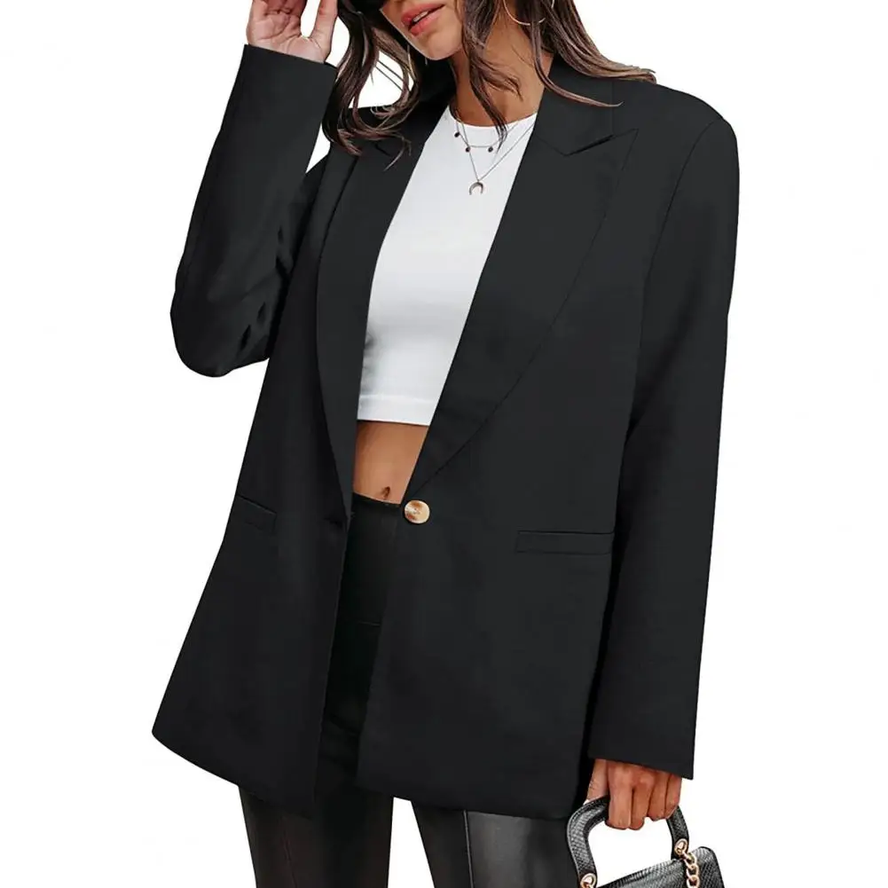Women Jacket Women Suit Chic Women's Business Blazers Single Button Lapel Suit Jackets with Pockets Anti-wrinkle for Formal