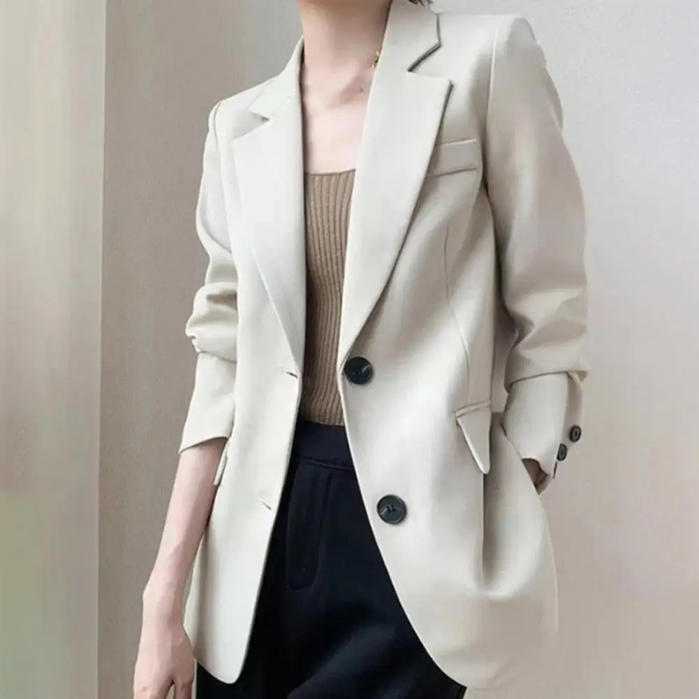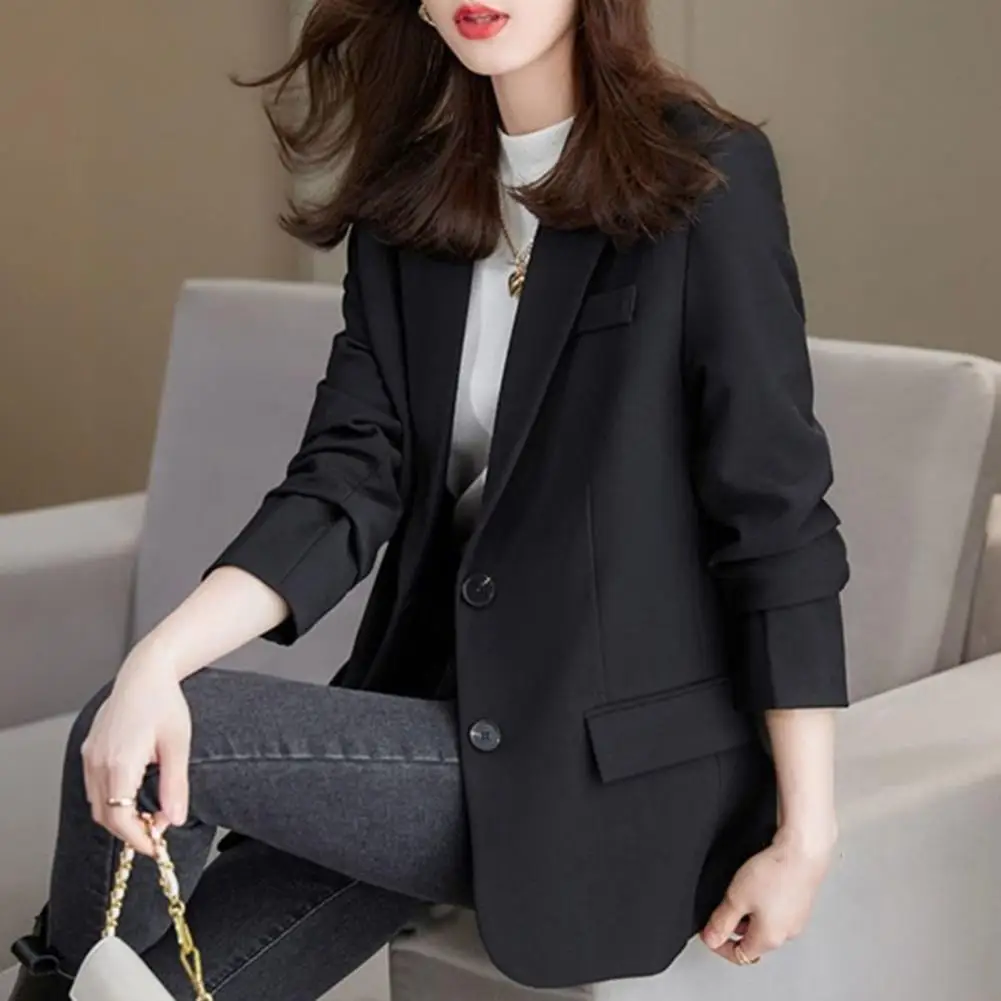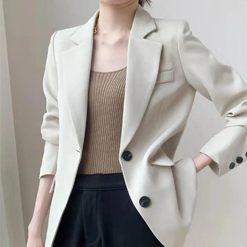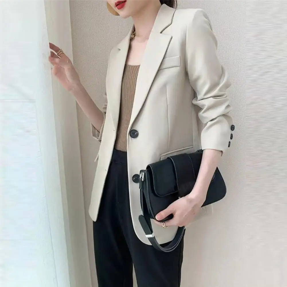 Lady Office Coat Lady Commute Coat Stylish Women's Business Suit Coat Solid Color Turn-down Collar Single-breasted for Office