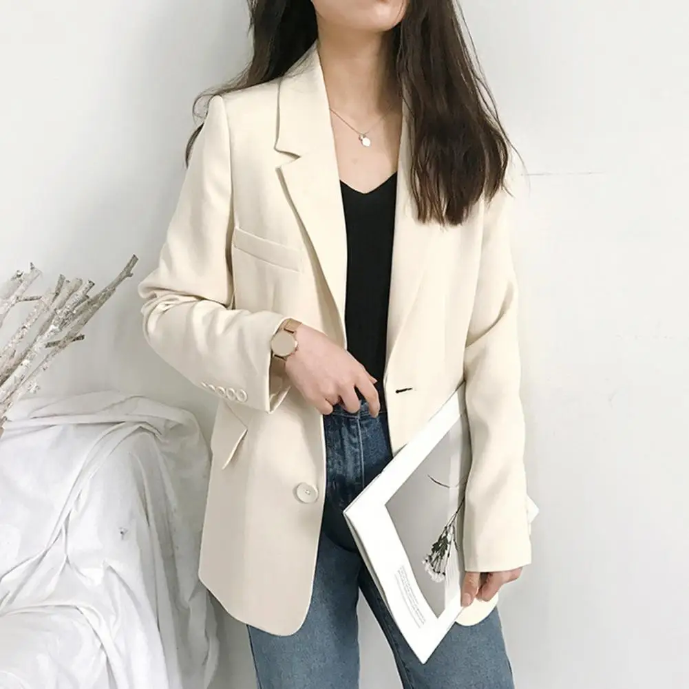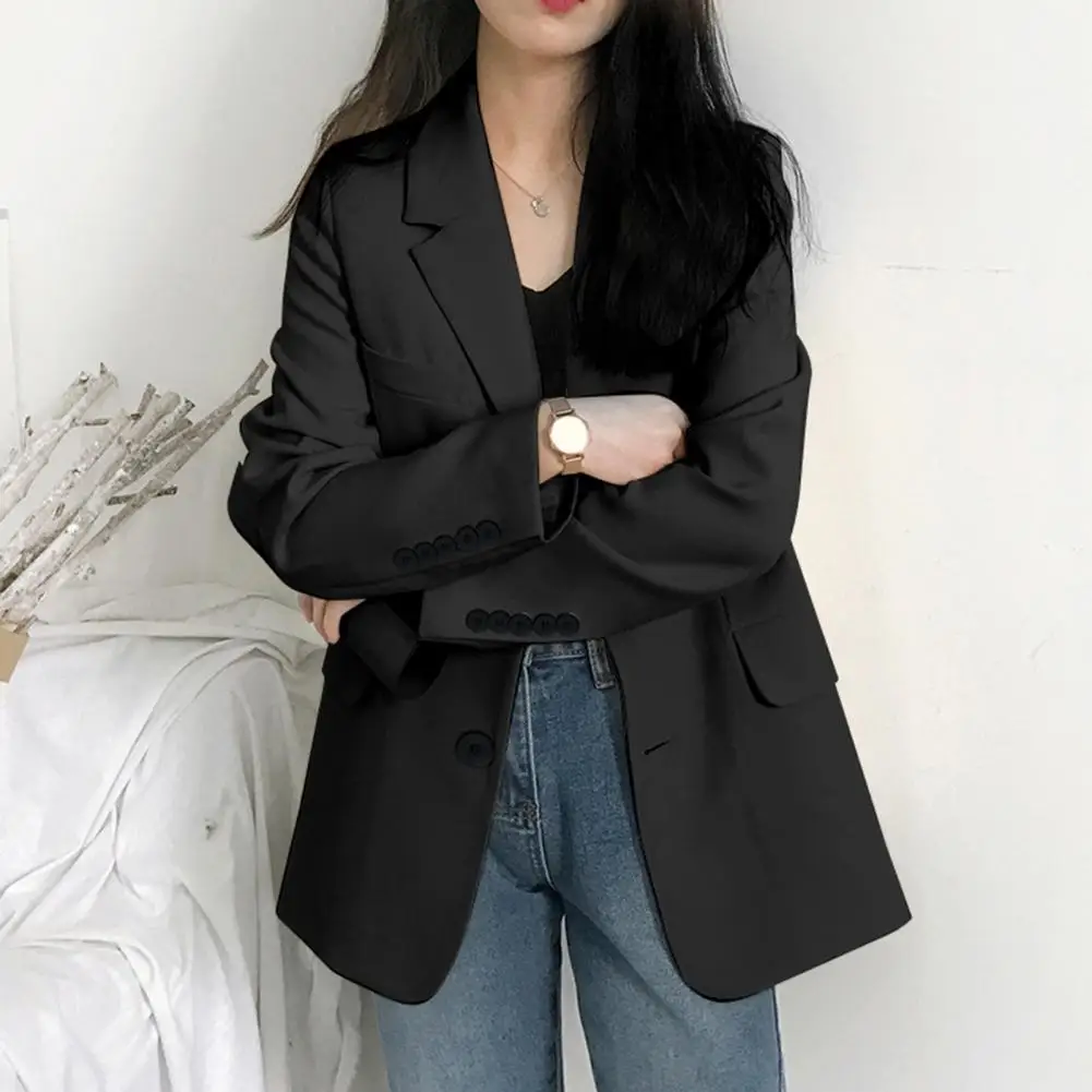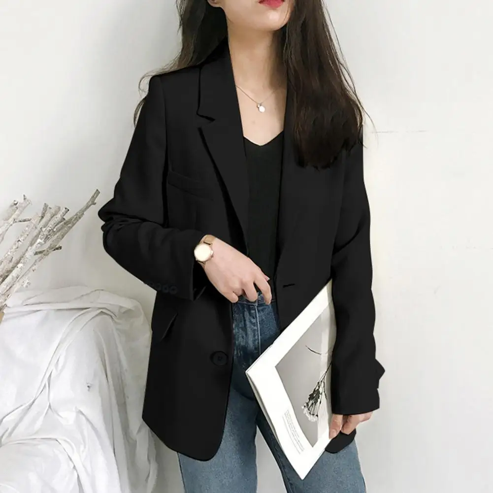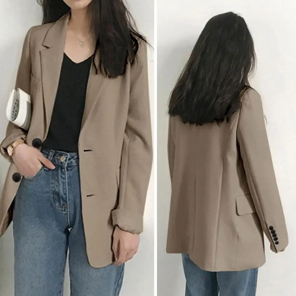 Office Ladies Blazers Business Blazer Women Solid Color Cardigan Turn-down Collar Flap Pockets Button Decor Lady Spring Coats