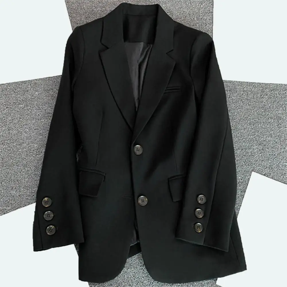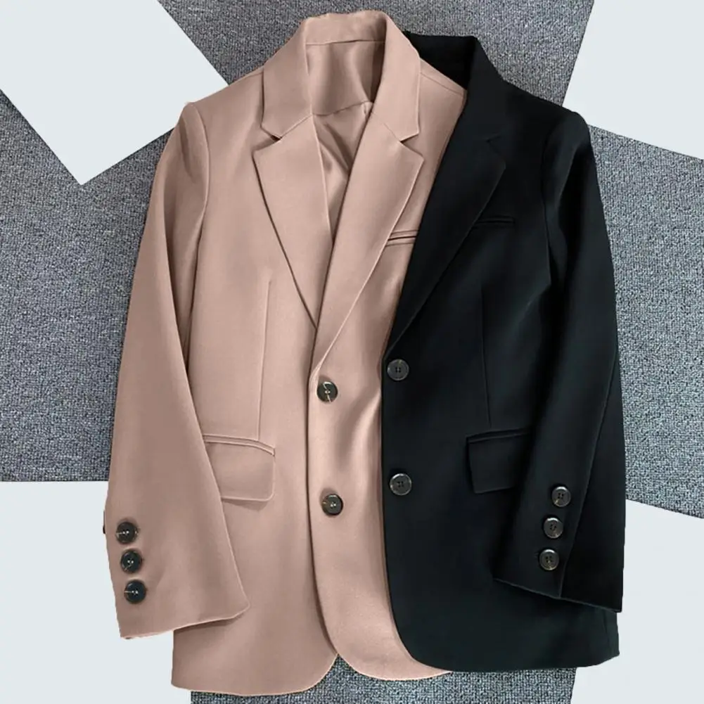 Single Breasted Women Coat Stylish Women's Lapel Suit Coat Long Sleeve Flap Pockets Single Breasted for Spring Autumn Workwear