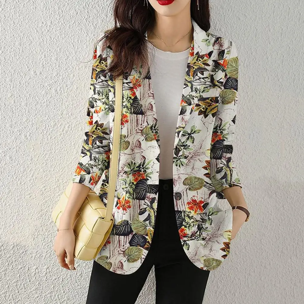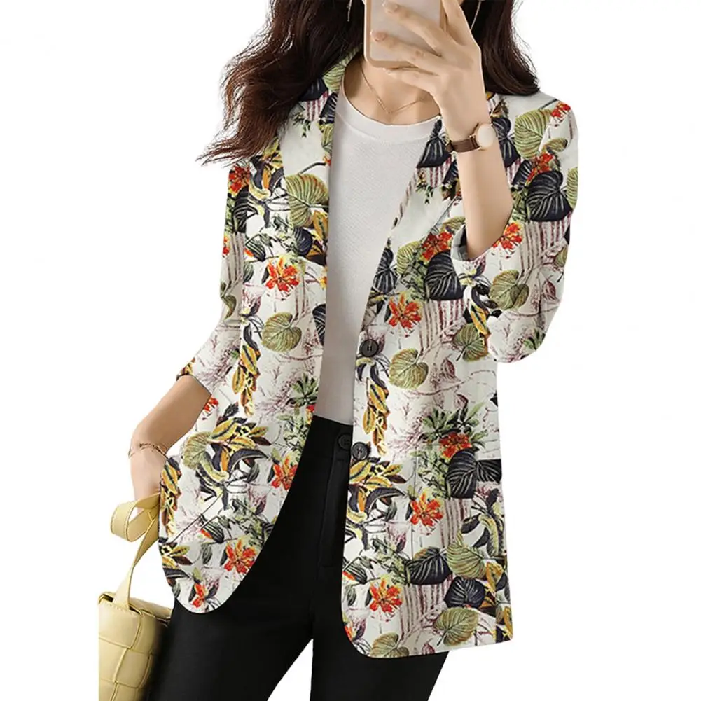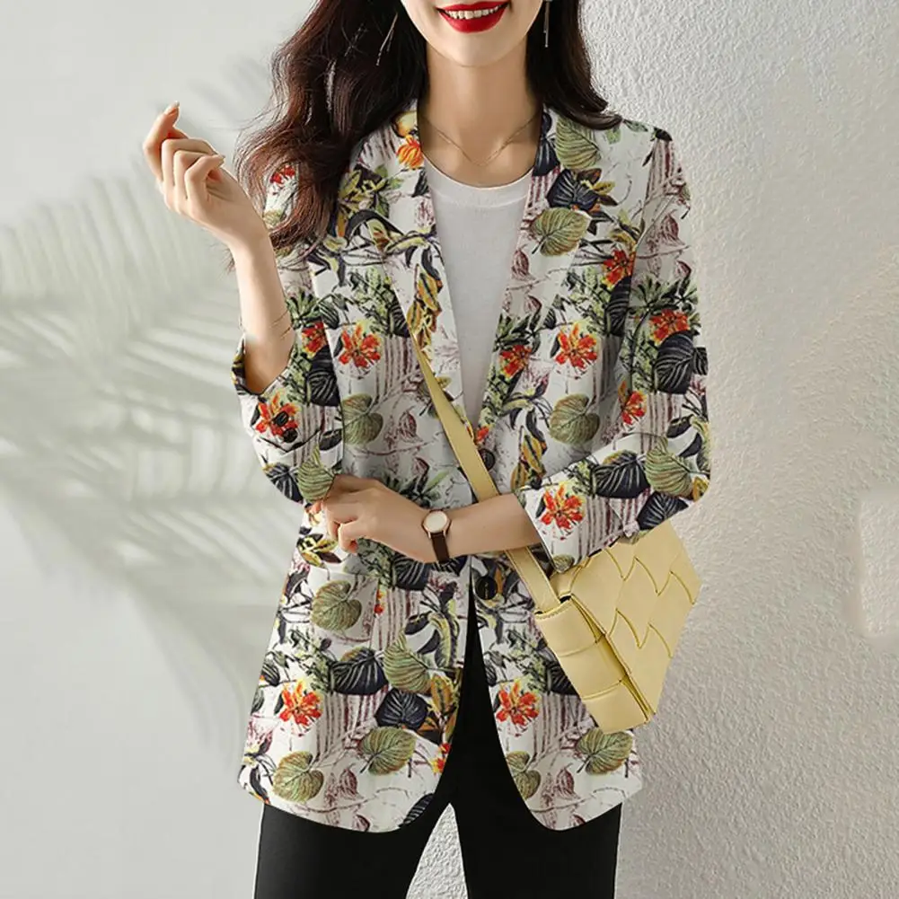 Warm Women Suit Coat Elegant Floral Printed Lapel Suit Coat with Single Button Closure Pockets Women's Workwear Outerwear Women