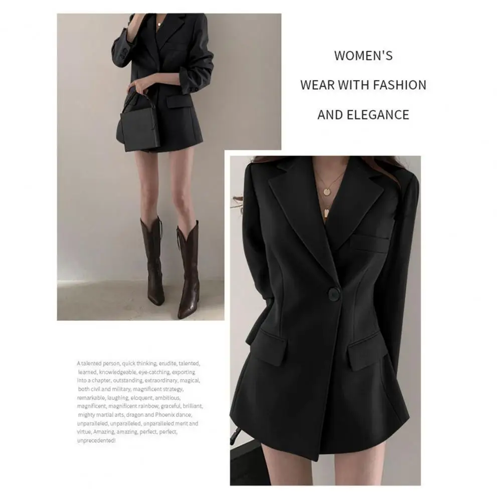 Versatile Suit Coat Elegant Women's Suit Coat with Lapel Single Button Closure Flap Pockets Stylish Slim Fit Work for Spring