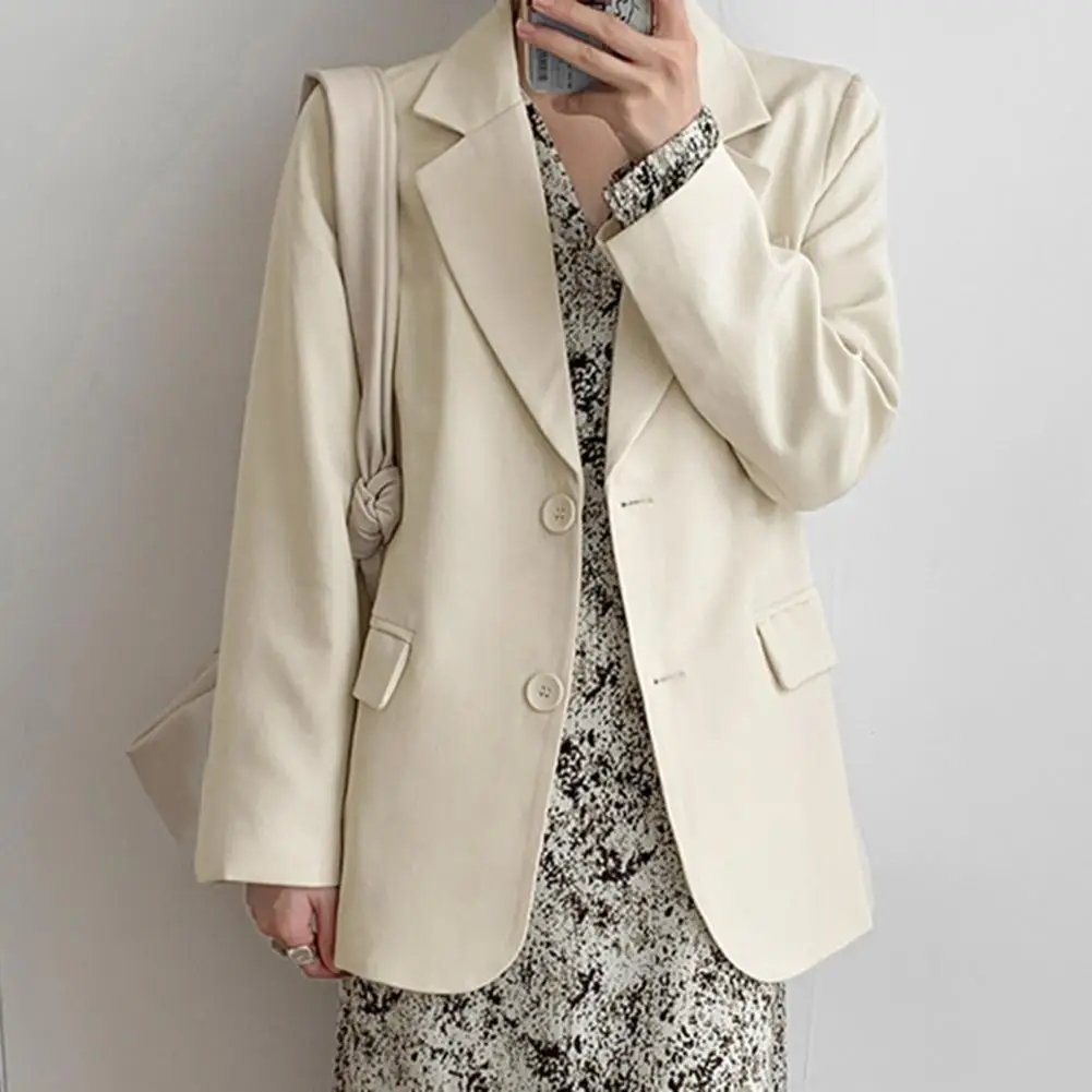 Lightweight Suit Coat Elegant Lapel Suit Coat for Women Stylish Single Breasted Business Outwear with Flap Pockets for Spring