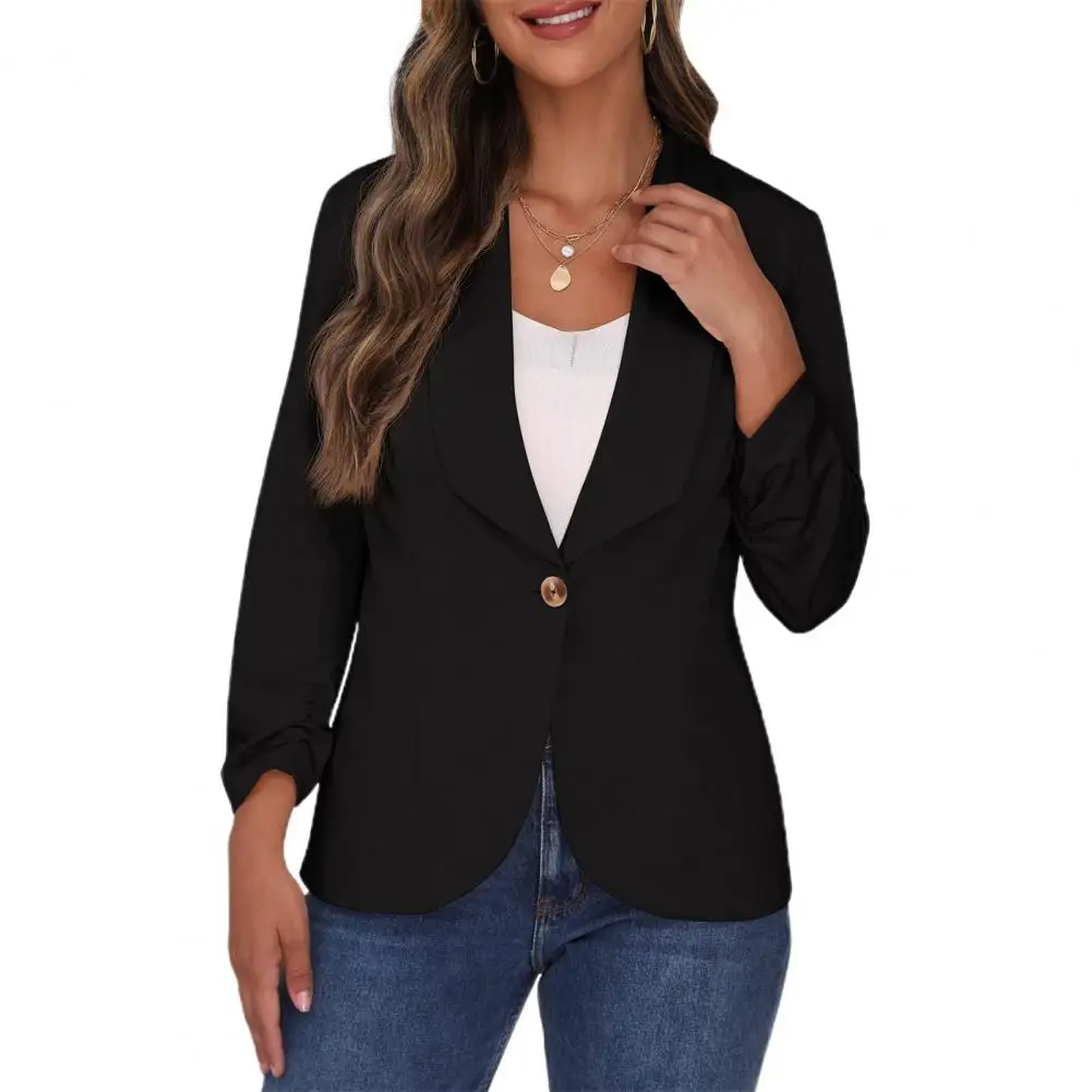 Elegant Solid Blazer Women Autumn Overcoats OL 2023 Casual Long Sleeve Single Button Coats Female Lapel Outwears Oversized