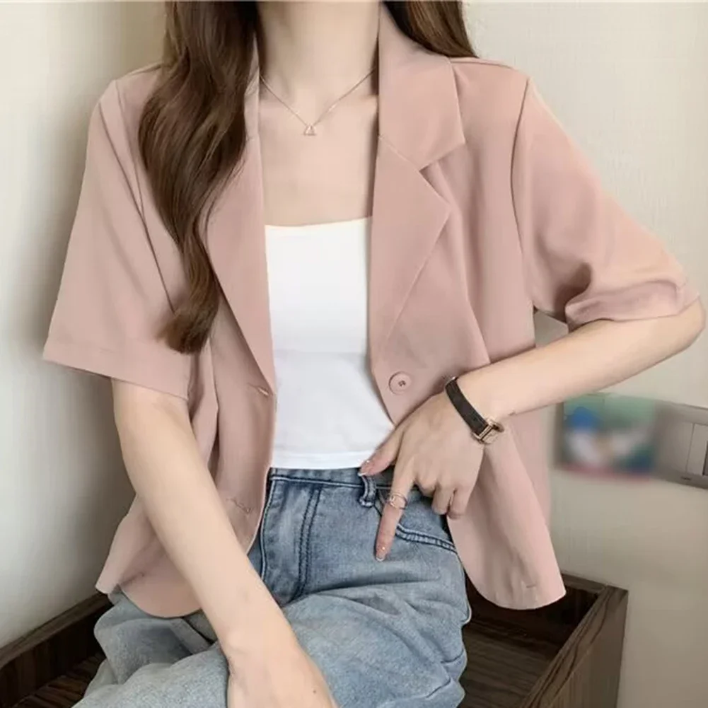 Summer Blazers Women Blazers Medium Elasticity Polyester Short Sleeves Single Breasted Solid Color Summer Fashion Hot Comfy