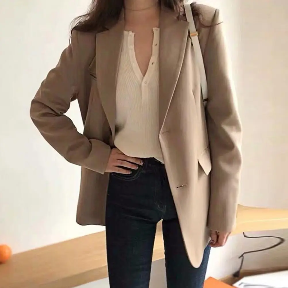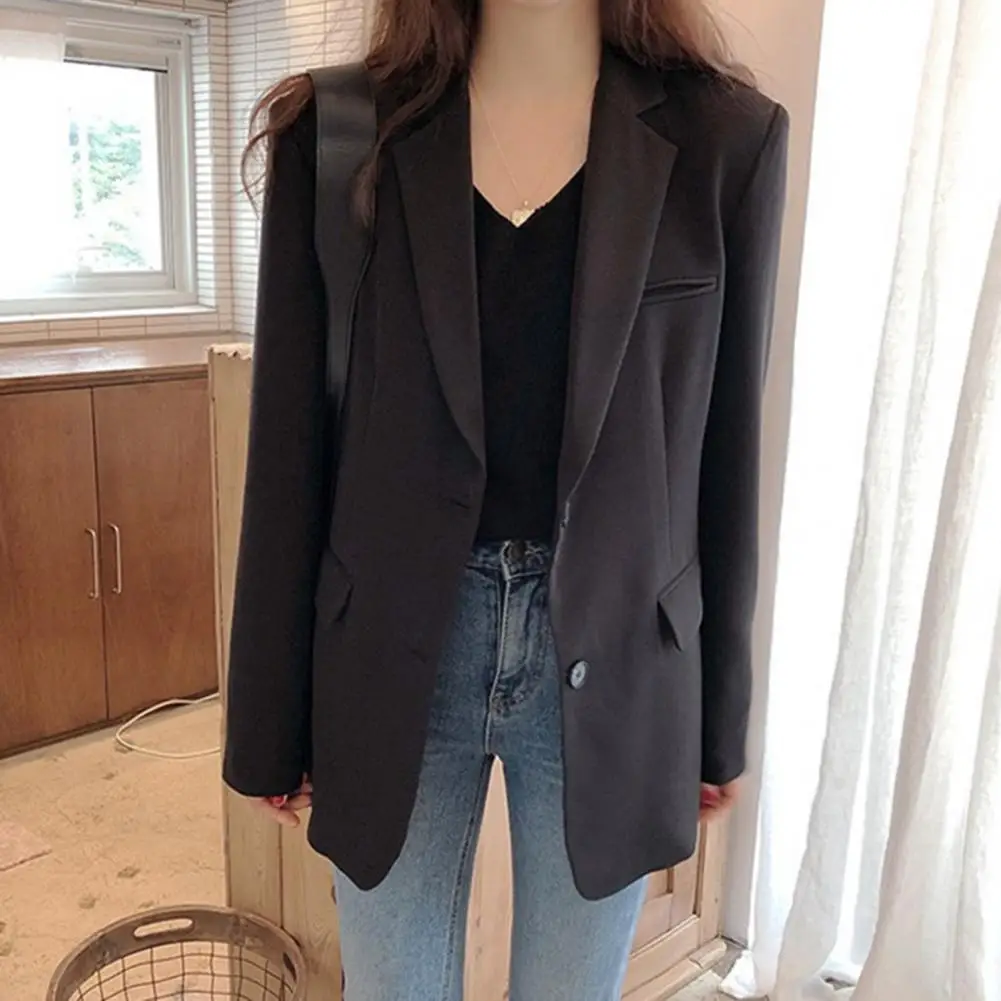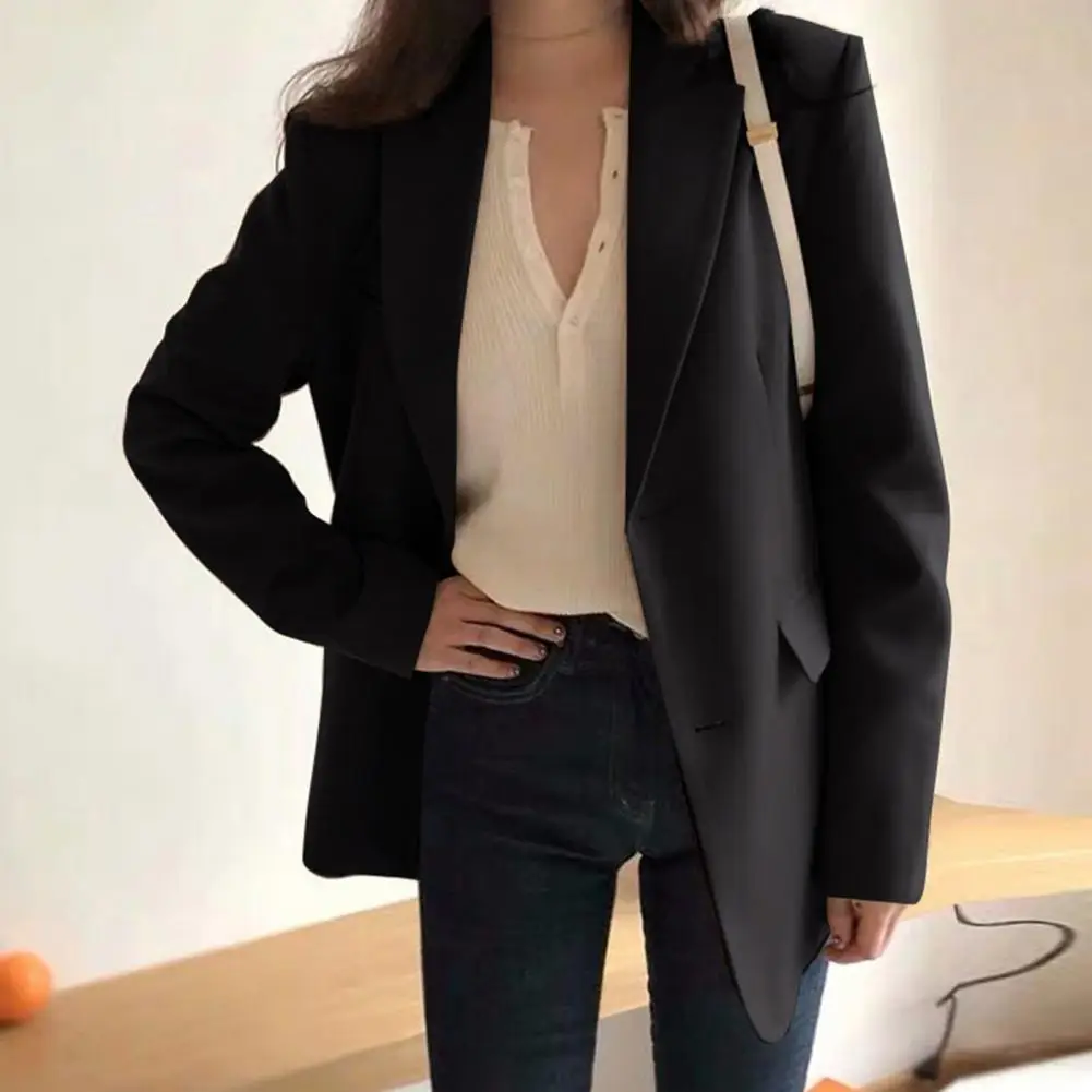 Women Autumn Blazer Lapel Solid Color Long Sleeves Single-breasted Slim Cardigan Anti-wrinkle Casual Lady Winter Coat for Office