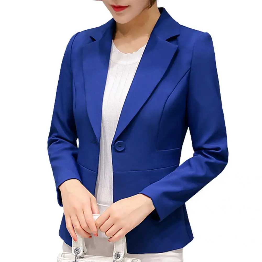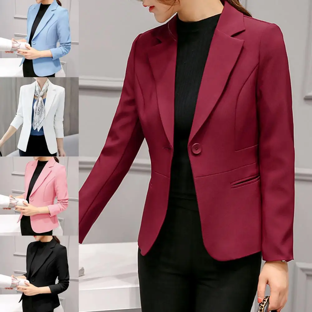 Suits Jacket Temperament Women Blazer Autumn One Button Stylish Turndown Collar Pockets Suits Coat