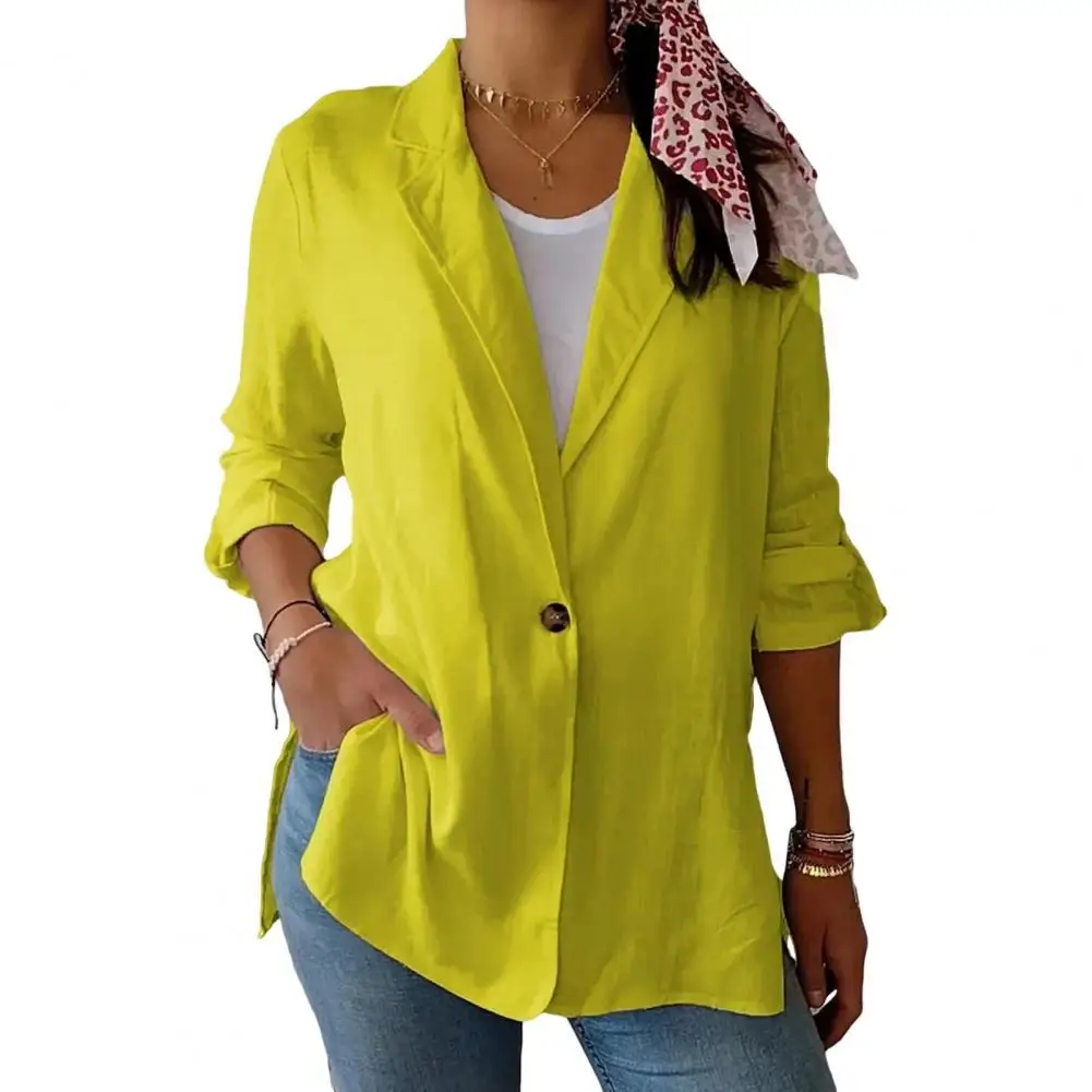 Versatile Women Suit Coat Elegant Lapel Suit Coat for Women Long Sleeve Business Outwear Single Breasted Jacket with Side Slit