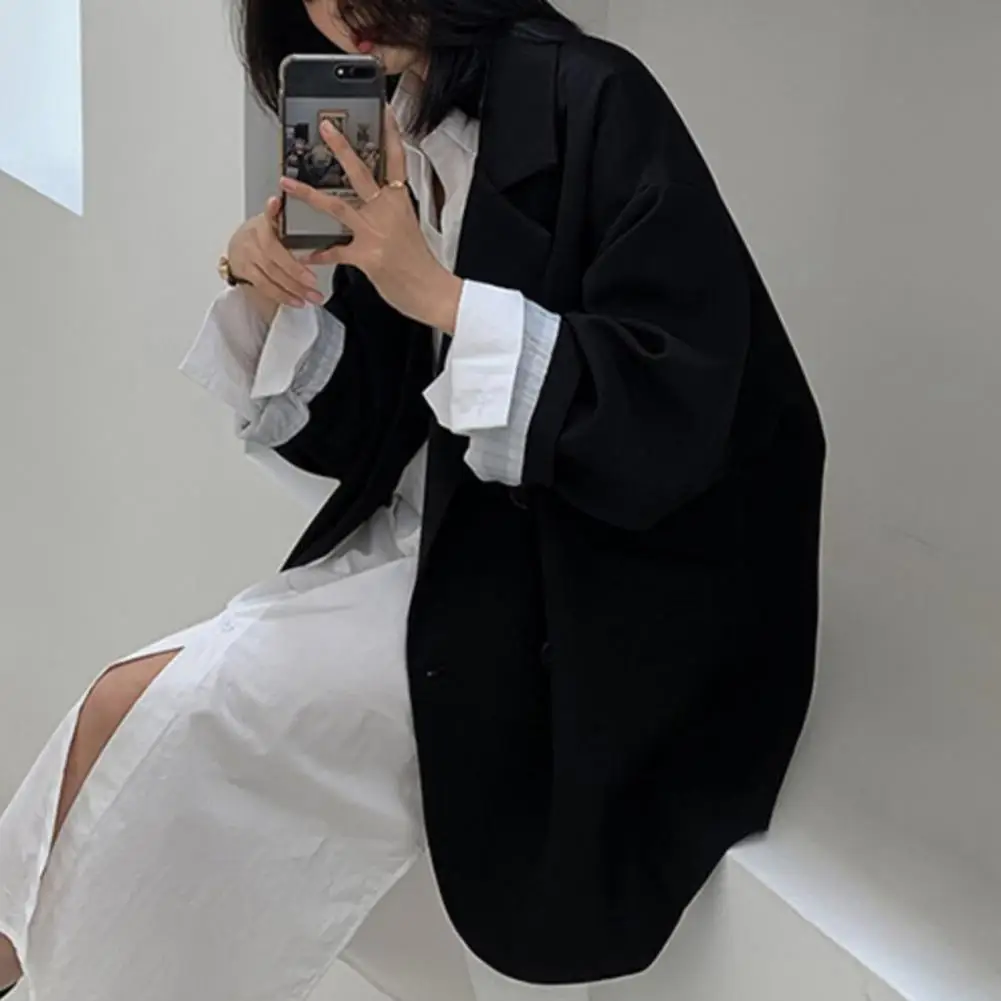 Buttons Placket Regular Length Warm Autumn Winter Solid Color Casual Lapel Suit Jacket Casual Blazer for Daily Life