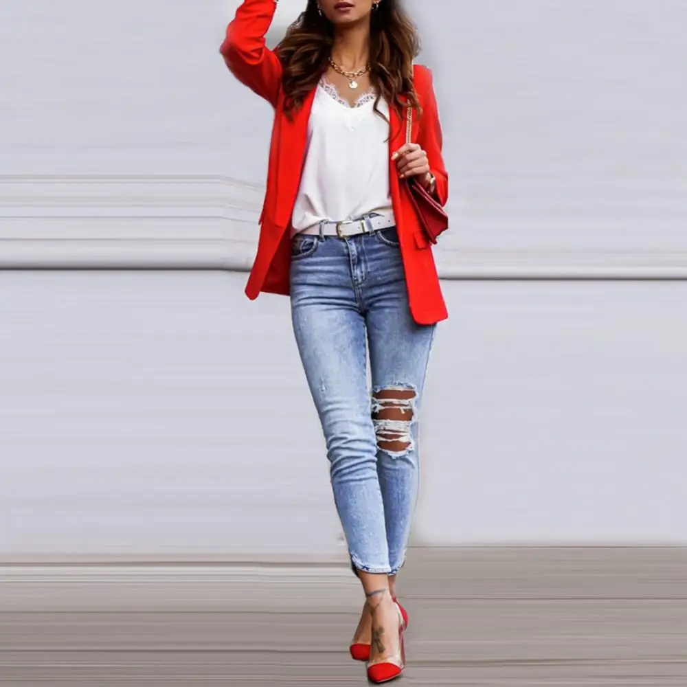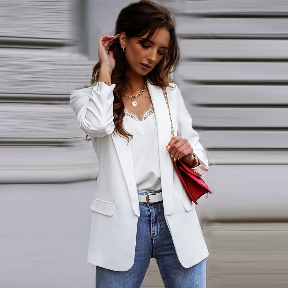 Autumn Fashion Blazer Jacket Women Casual Notched Collar Pockets Long Sleeve Work Suit Coats Office Lady Solid Blazers