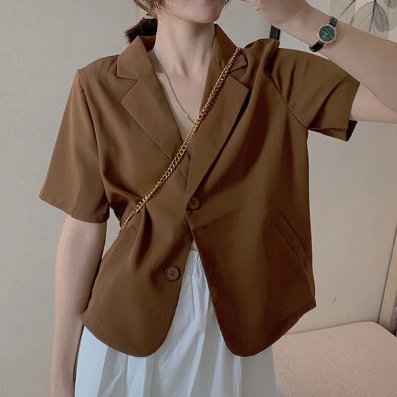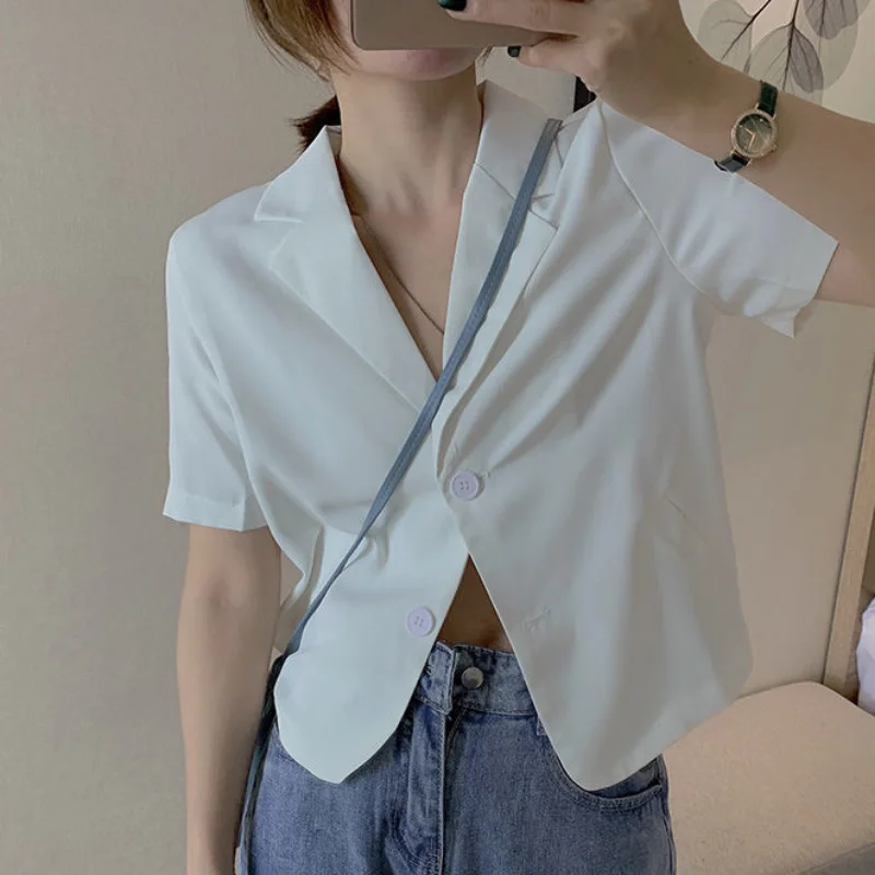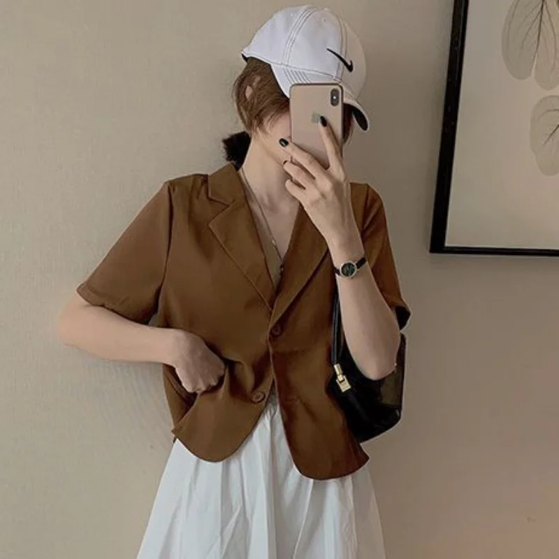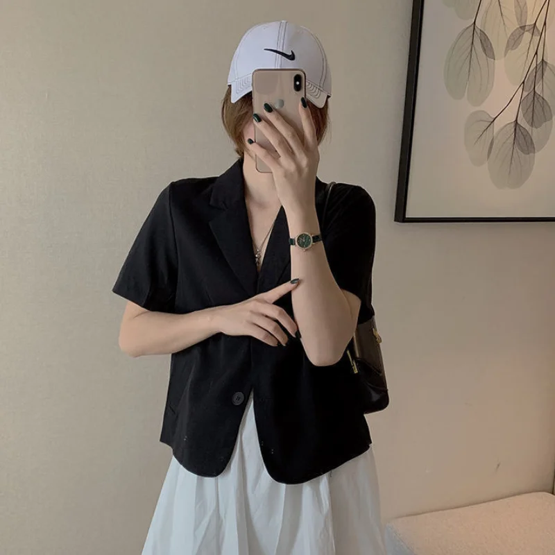 Short Sleeve Blazers for Women Solid Notched Cropped Summer Ins All-match Daily Office Lady Korean Style Casual Classic Tender