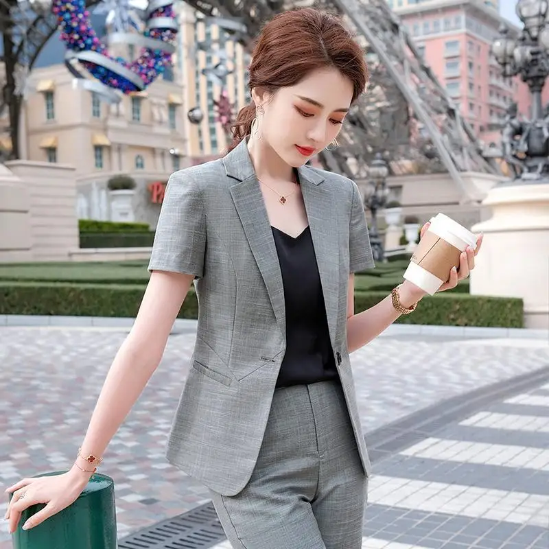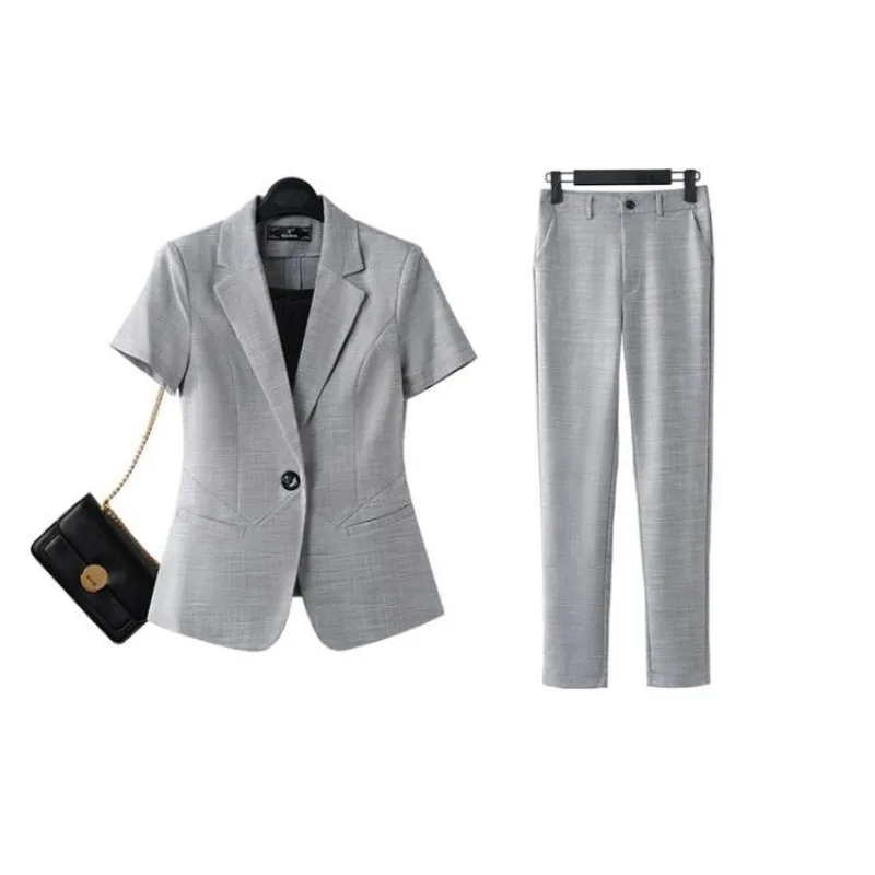 Name | Women's Summer Thin Short Sleeve Blazers Jacket Pants Two Piece 2023 New Fashion High End Professional Suit Set Femlae Clothing |
