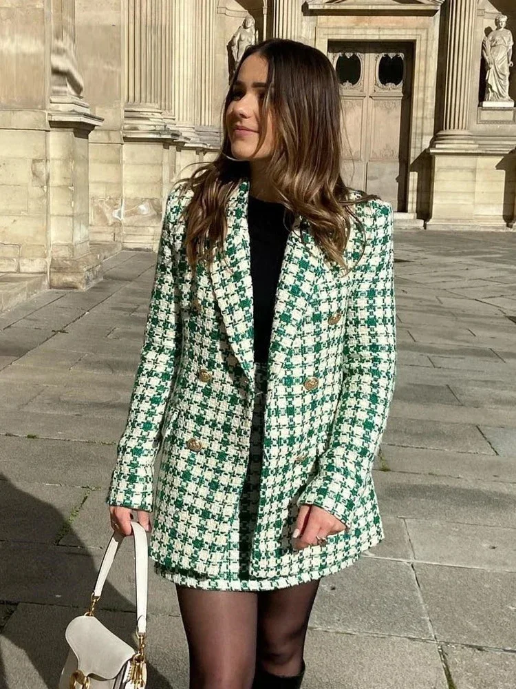 Name | ZBZA Women's Tweed Suit Suit Pure Color Plaid Suit Fashion High Waist Half-body Skirt Autumn and Winter Women's Clothing |
