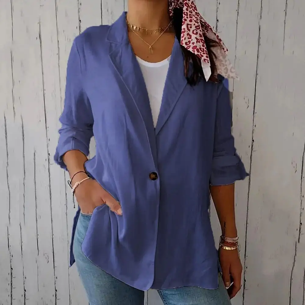 Lapel Coat Commuting Style Jacket Elegant Lapel Suit Coat for Women Stylish Long Sleeve Office Jacket Classic Single Button
