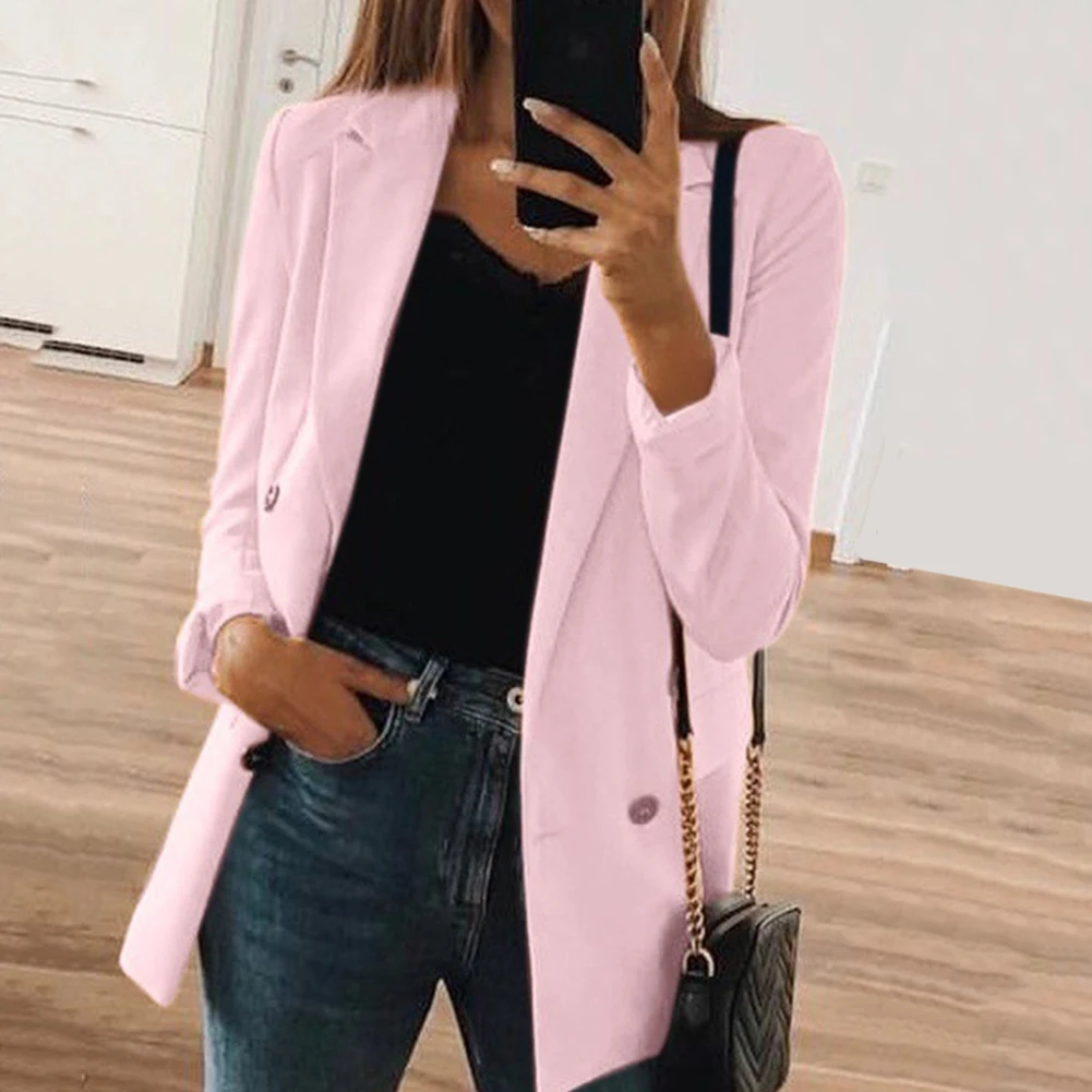 Women Solid Color Turndown Collar Long Sleeve Tailored Suit Jacket Coat Blazer