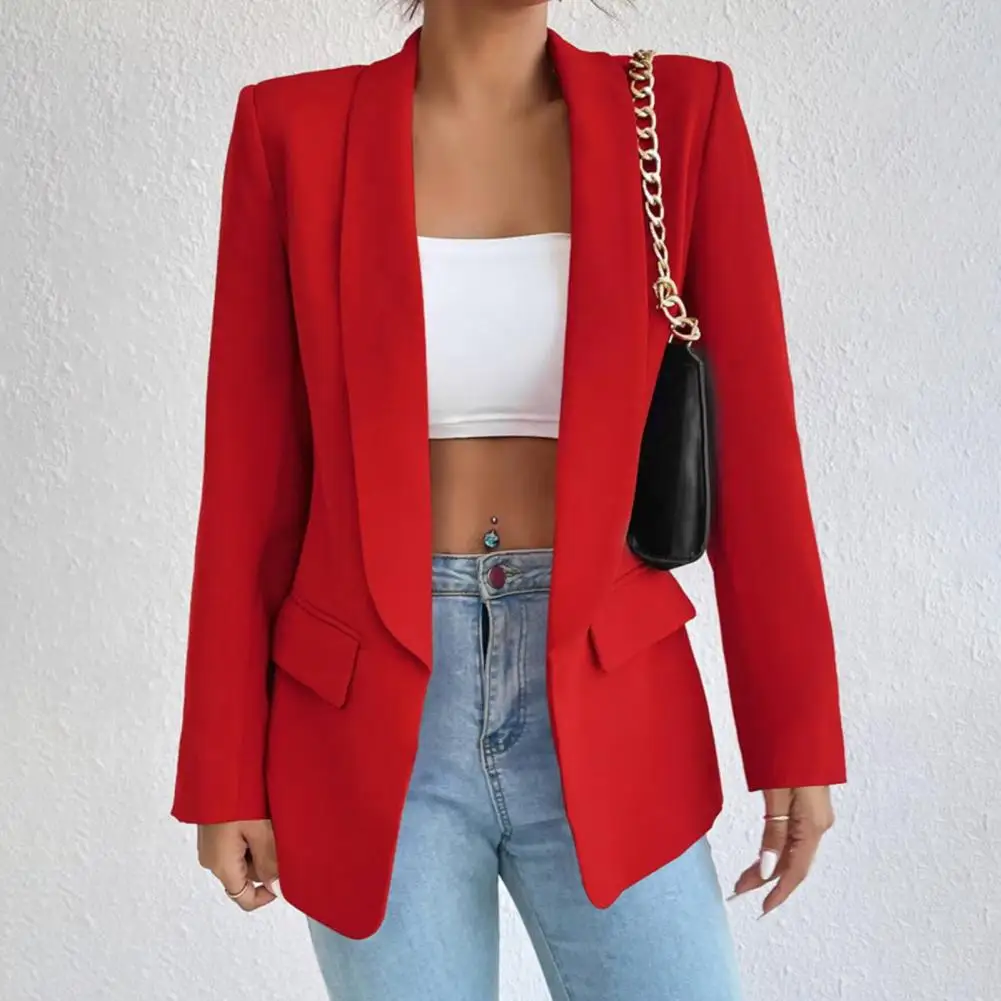 High-end Women Suit Coat Elegant Lapel Suit Coat for Women Stylish Open Front Business Outwear Solid Color for Work for Women