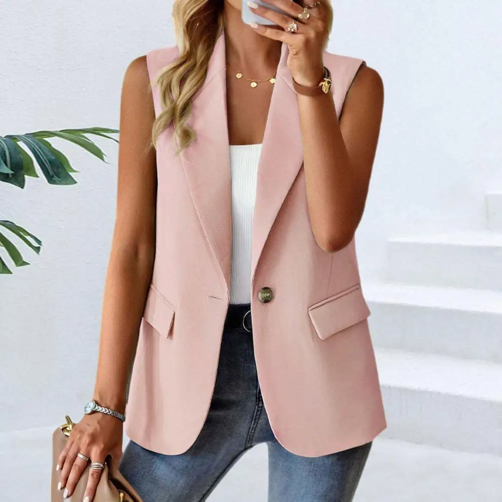 Women Suit Jacket Casual Thin Suit Jacket Stylish Sleeveless Women's Work Vest with Flap Pockets Lightweight Office for Summer