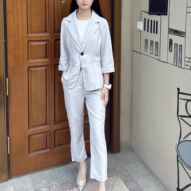 Name | Women's 2024 Autumn New Fashion Thin Slim Professional Suit Two Piece Korean Elegant Casual Blazers Coat+Pants Matching Set |
