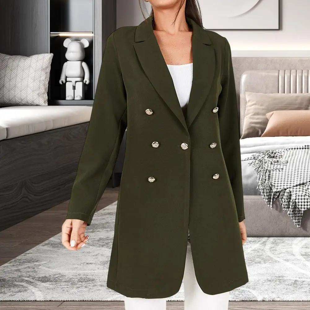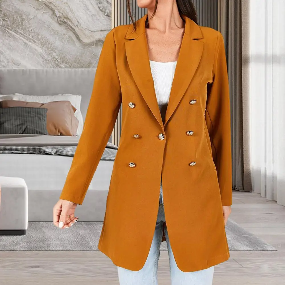 Long Blazer Lapel Slim Fit Long Sleeve Autumn Blazer Solid Color Women Blazer Double Breasted Midi Suit Coat بذلات بليزر نسائية