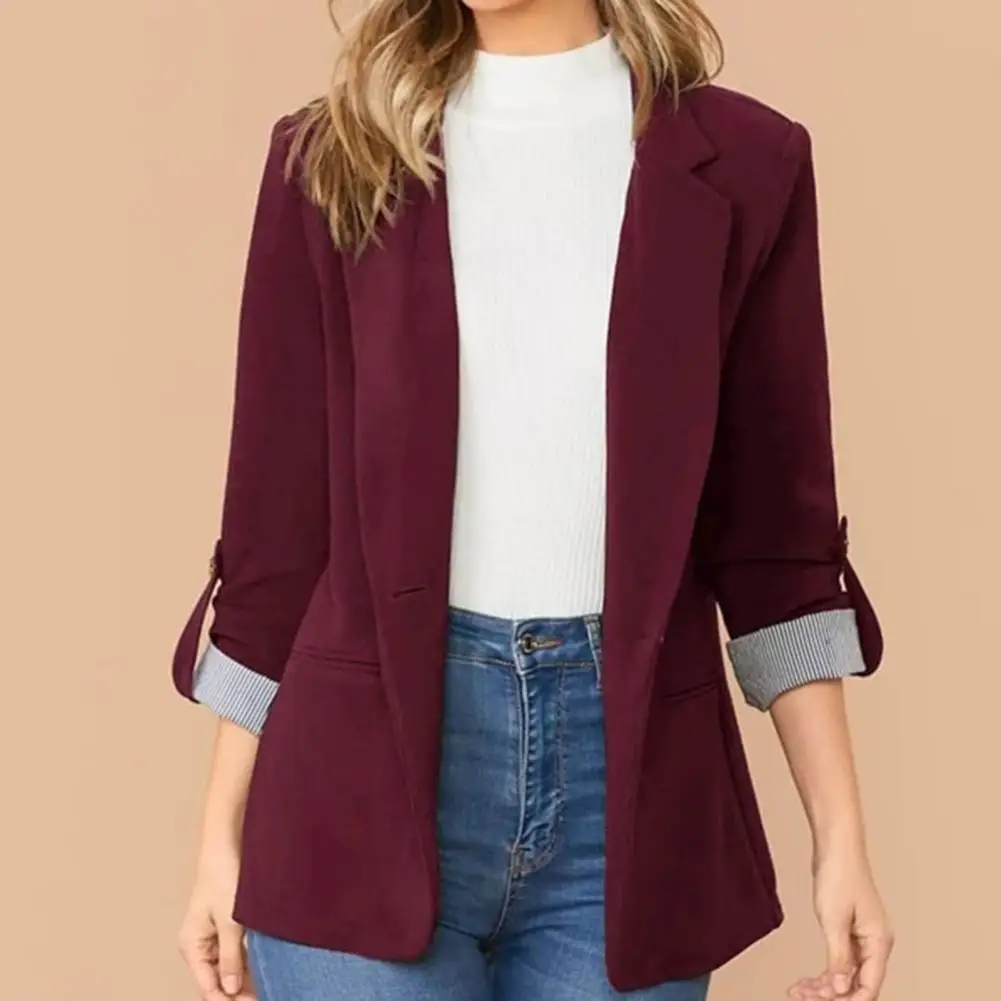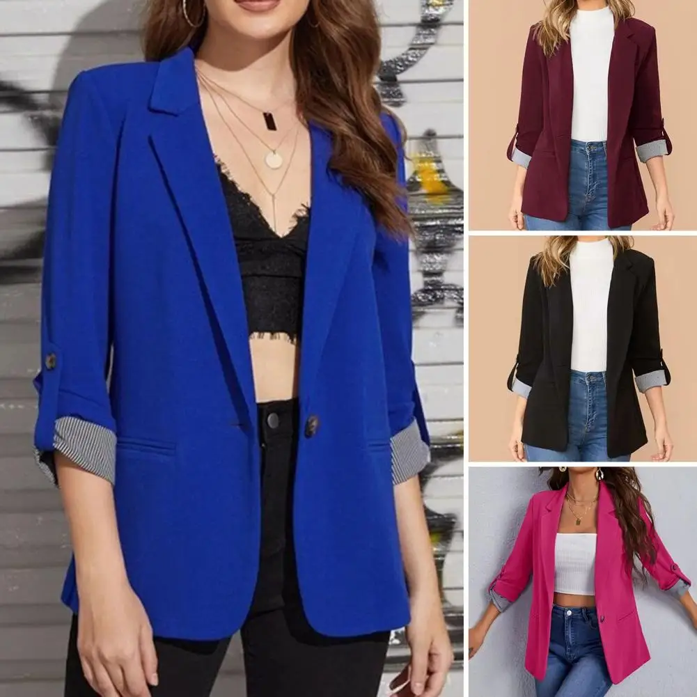 Women Suit Coat Women Jacket Elegant Lapel Suit Coat with Single Button Closure Pockets Women's 3/4 Sleeve Solid for Workwear
