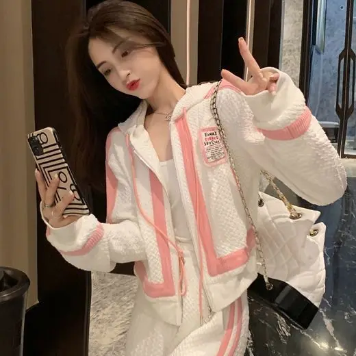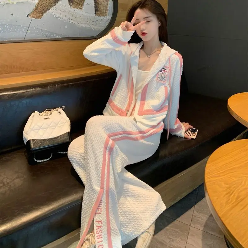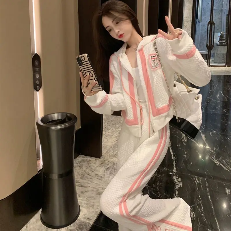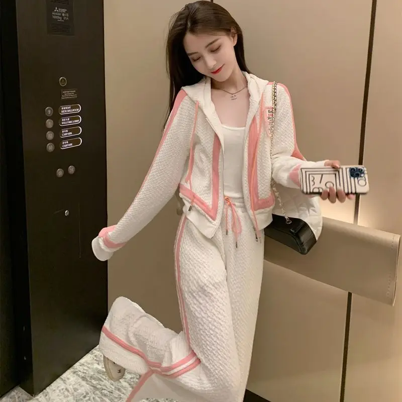 Fashion Track Suits for Women 2 Piece Set 2023 Spring Korean Sweet Cute Coat Zipper + Wide Leg Pants Two Piece Set Sportswear