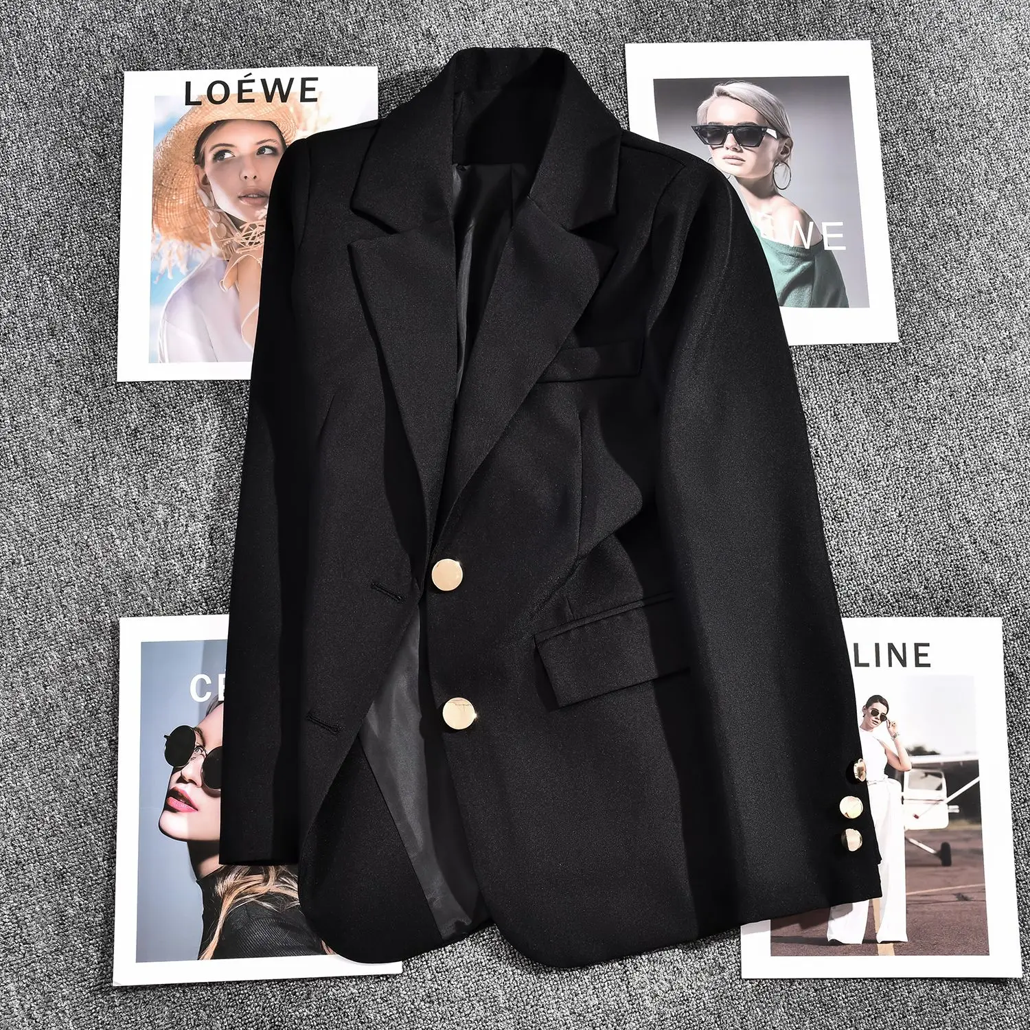 Women's Spring and Summer Retro Casual Short Long-sleeved Blazers Coat French Commuter Solid Color Loose Single-breasted Blazer