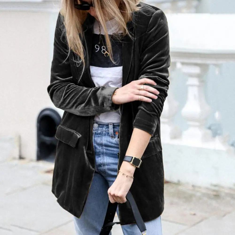 Elegant Women Blazers Jacket Velvet Solid Color Long Sleeve Turn-down Collar Loose Suits Jackets For women ensembles de blazers