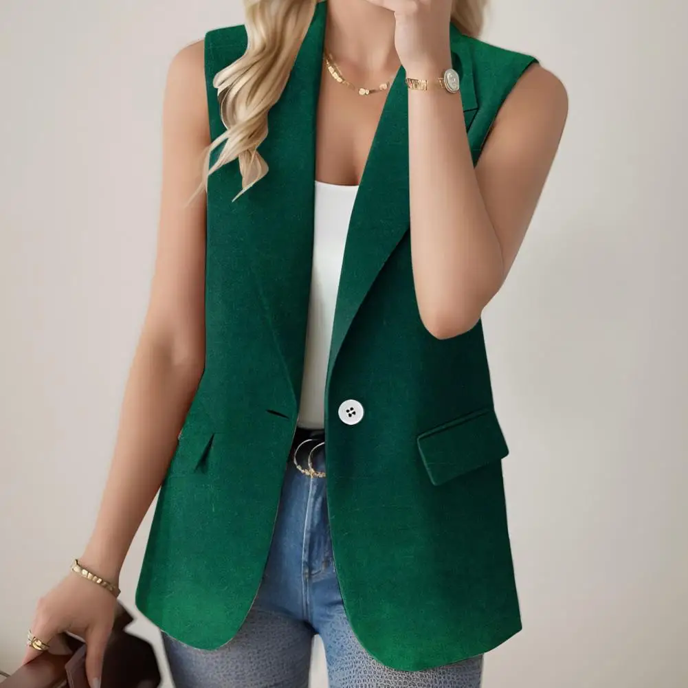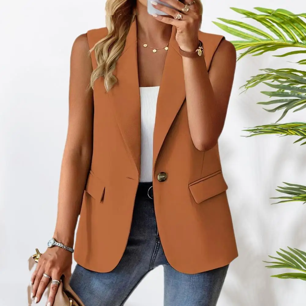 Women Suit Jacket Summer Sleeveless Suit Coat Stylish Sleeveless Women's Work Vest with Flap Pockets Lightweight for Summer