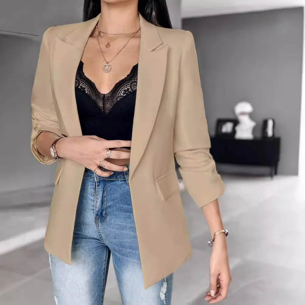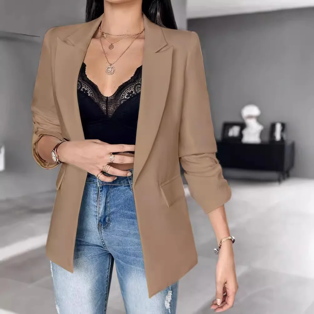 Women's Suit Jacket Solid Color Long Sleeved Lapel Pocket Cardigan Suit Autumn/winter 2024