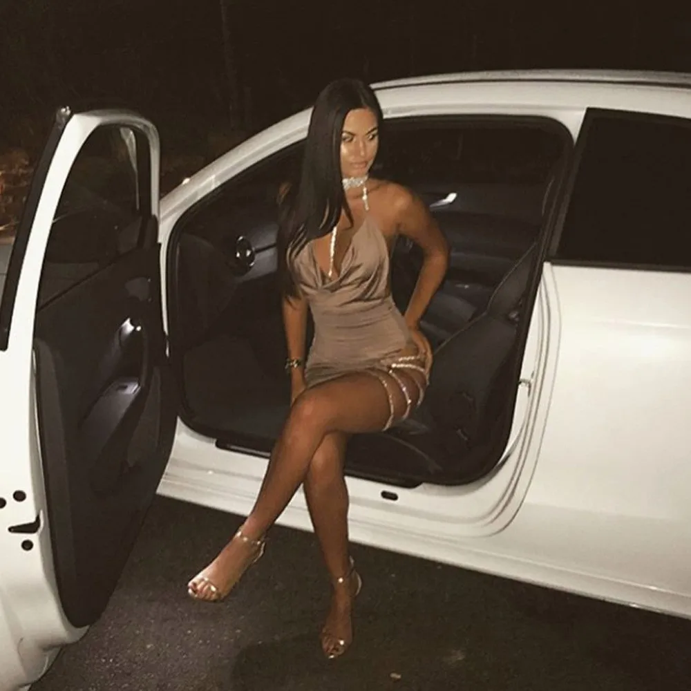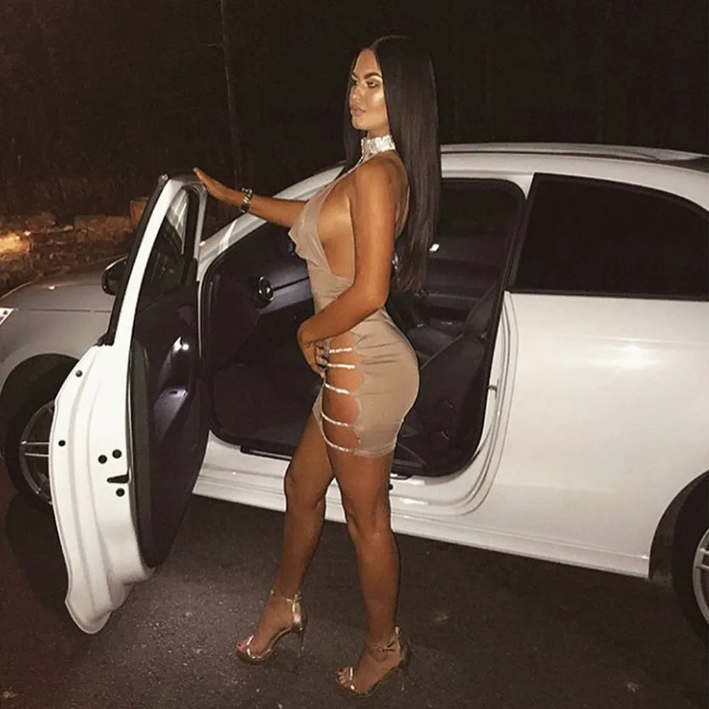 Cocktail Dress For Women 2024 Sexy Halterneck Deep V Neck Backless Sequin Chain Mini Dresses Side Slit Evening Party Dress