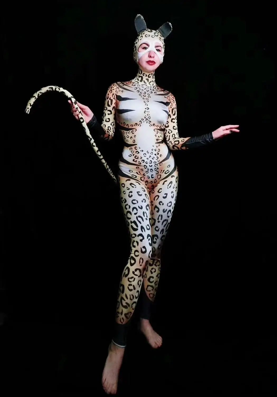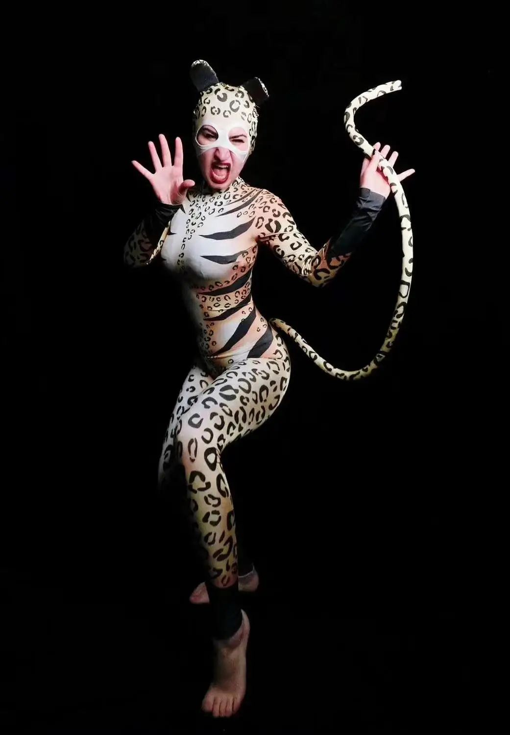Halloween Party Leopard Cosplay Costumes Women Stretch Skinny Animal Role Playing Bodysuit Sexy Dancer Leotard Stage Outfits