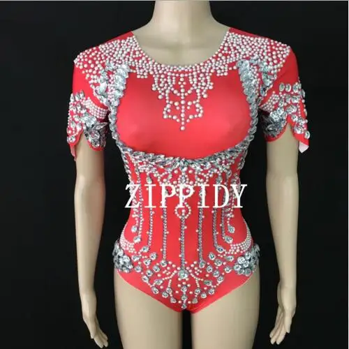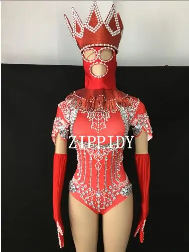 Shining Crystals Bodysuit Diamonds Sparkly Headpiece Outfit Sexy Stage Outfit Women Costume Birthday Dance Wear