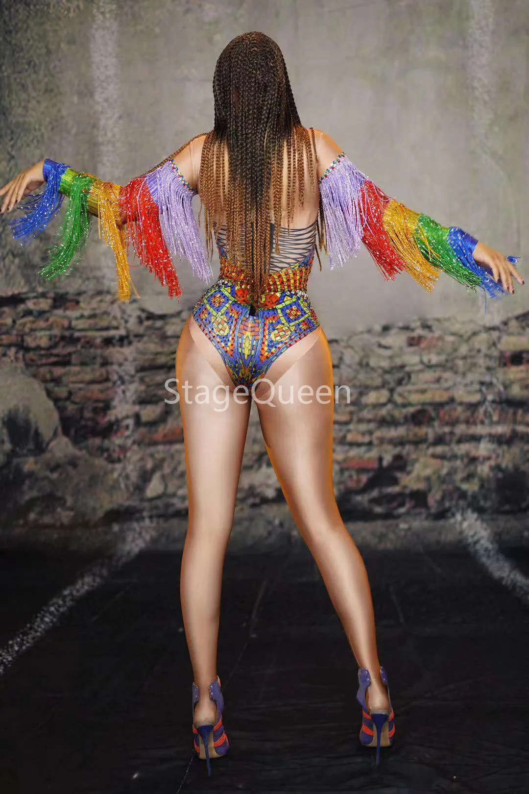 Colorful Rhinestones Fringes Leotard Costume Women's Birthday Prom Celebrate Outfit Bar Evening Women Dancer Bodysuit