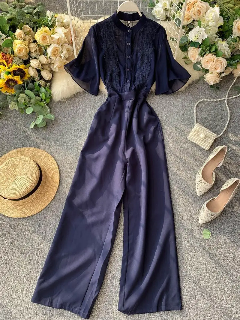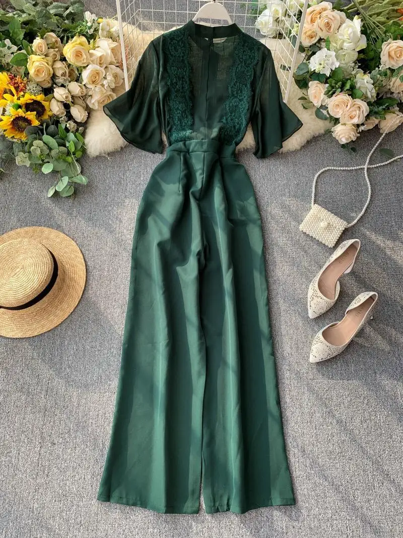 Name | Lace Jumpsuit Women Clothes 2020 Korean Vintage Elegant Straight Full Length Pants Chiffon Overalls for Women Ropa Mujer ZT5295 |