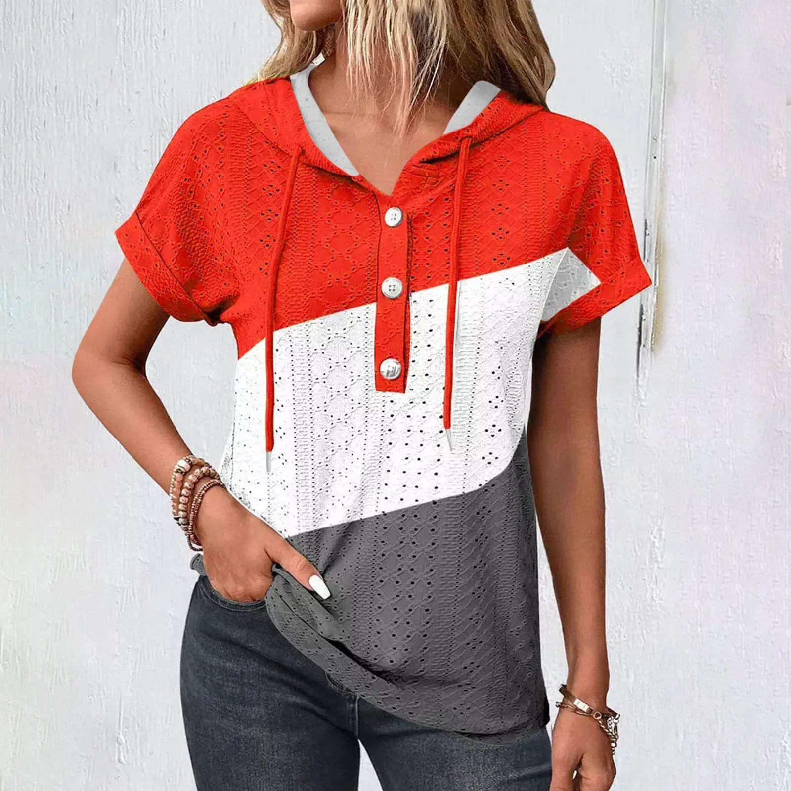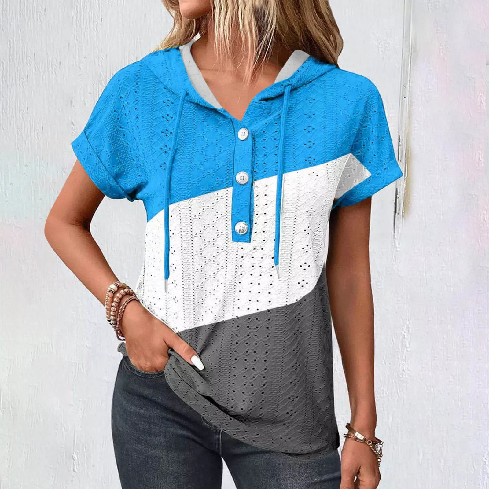 Womens Fashion Casual Top Button Hoodies Shirts Summer Short Sleeve Casual Loose Shirts Top Long Sleeve Sweatshirt