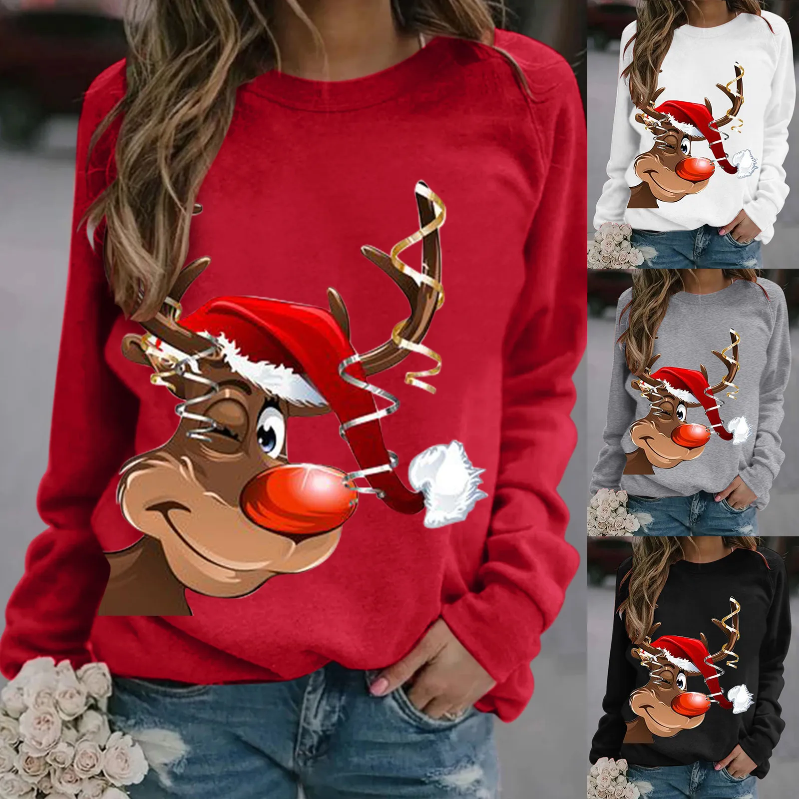 Autumn Winter Christmas Sweatshirt Fashion Elegant Tops Ladies Round Neck Xmas Elk Printed Long Sleeve Pullover Sweatshirts